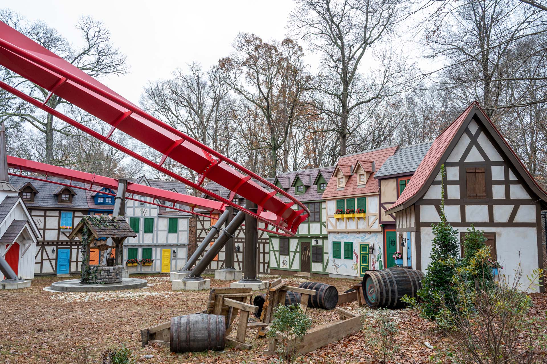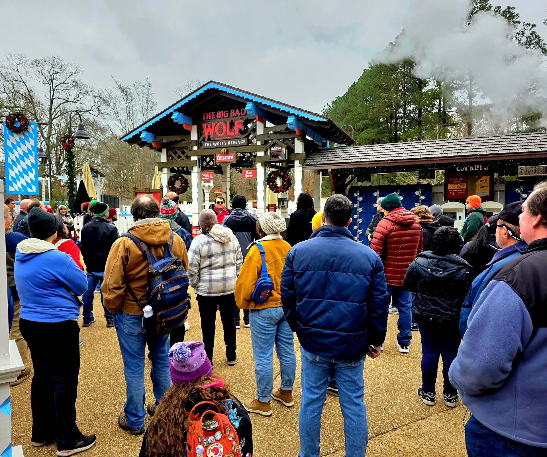 Park policy at Busch Gardens prevents any of the outdoor coasters from operating when ambient air temperature is below 40 degrees, and as it happened, temperatures hovered in the high 30s for most of the morning. However, instead of leaving attendees hanging, Busch Gardens graciously offered an impromptu behind-the-scenes look at the new-for-2025 roller coaster, Big Bad Wolf: The Wolf’s Revenge.