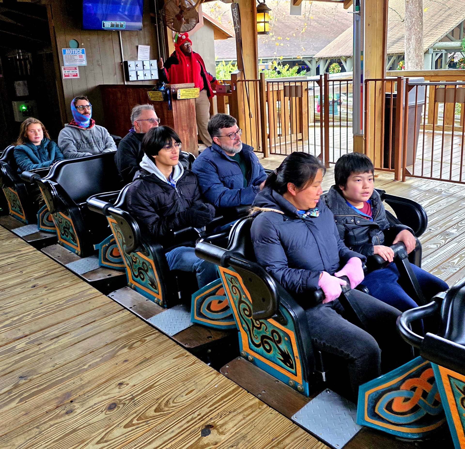 The weather was warm enough for the coasters to remain open, so everyone gathered at both Grover’s Alpine Express and Big Bad Wolf: The Wolf’s Revenge for informal takeover times (ITOTs). The turnout for Grover’s was especially large — it’s always more fun to ride a “kiddy cred” when accompanied by fellow enthusiasts.