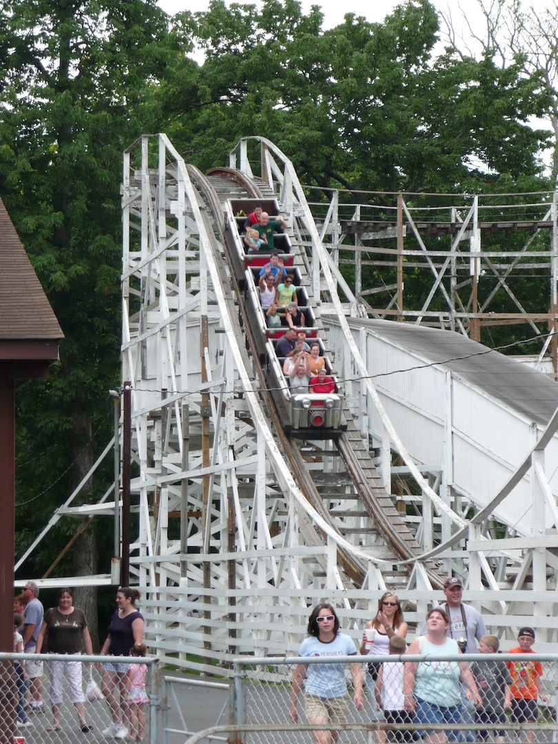 The park installed its first coaster in 1912, a side-friction figure-8 design by the Breinig Construction Company of Nicolette, West Virginia. It was appropriately called The New Sensation, being a very popular concession in the park. In later years, it was renamed simply Roller Coaster. In 1916, Eustace Via purchased the park from the Camden Interstate Railway and added more rides and attractions over the subsequent years. Via ran the park until his death in 1946 when it was then purchased by John P. Boylin Sr. Boylin continued to operate the park and decided in 1957 that the aging Roller Coaster would need to be replaced. During that summer, he closed the ride early in the season and demolished it in preparation for a new attraction.