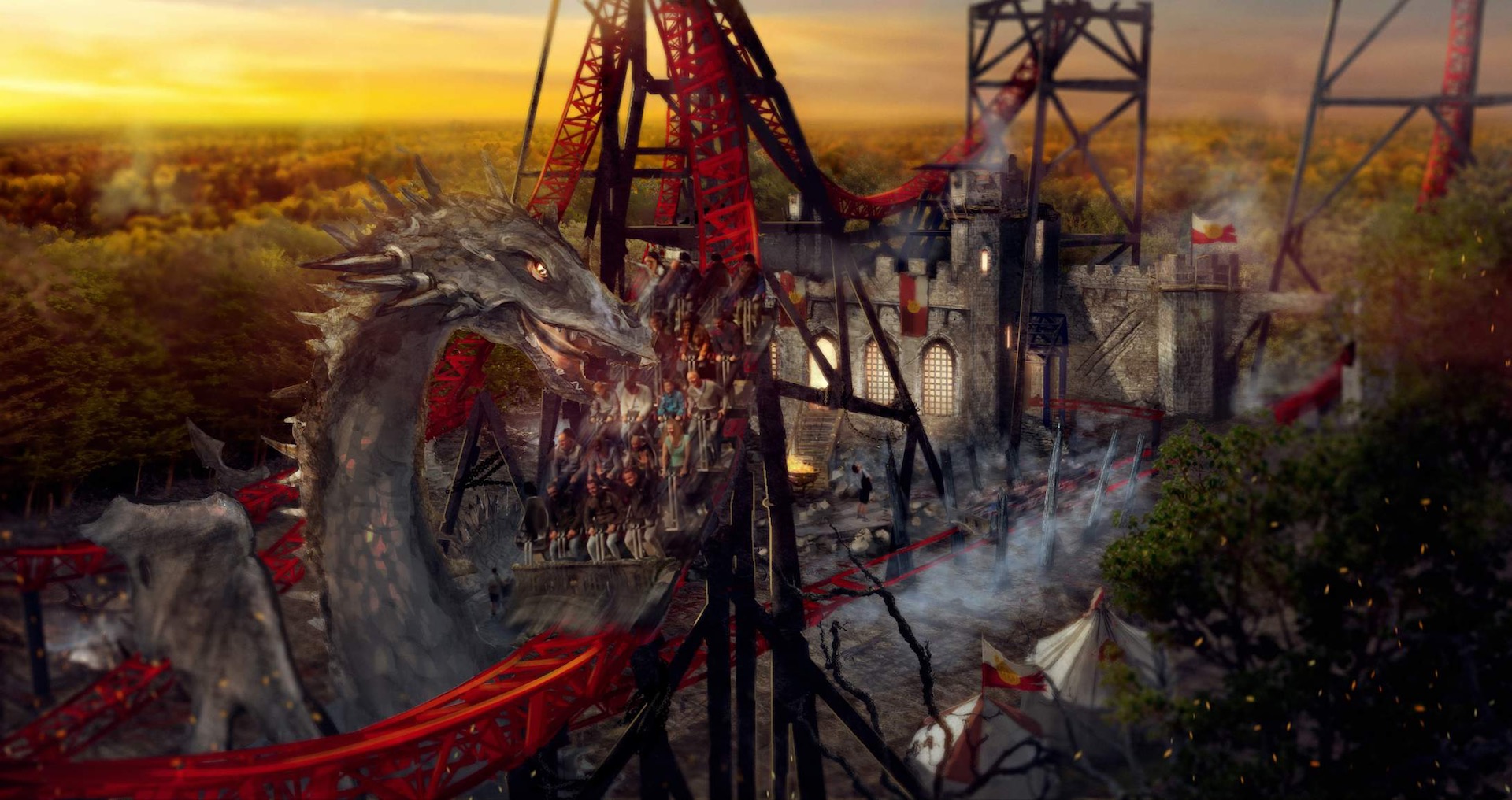 The new hybrid roller coaster will be part of a new section at the theme park called Smoczy Grod, an area reminiscent of the legendary fairytale town, inspired by dragons and medieval architecture. In addition to Zadra, the new area will be developed with other attractions, including a dark ride featuring a journey to the medieval times of knights and dragons, a mini monorail stylized as medieval carriages, a castle and finally, of note to enthusiasts, a junior coaster (by Preston & Barbieri) slated to open April 2020. This coaster, along with Zadra, would jump Energylandia’s count to 14.