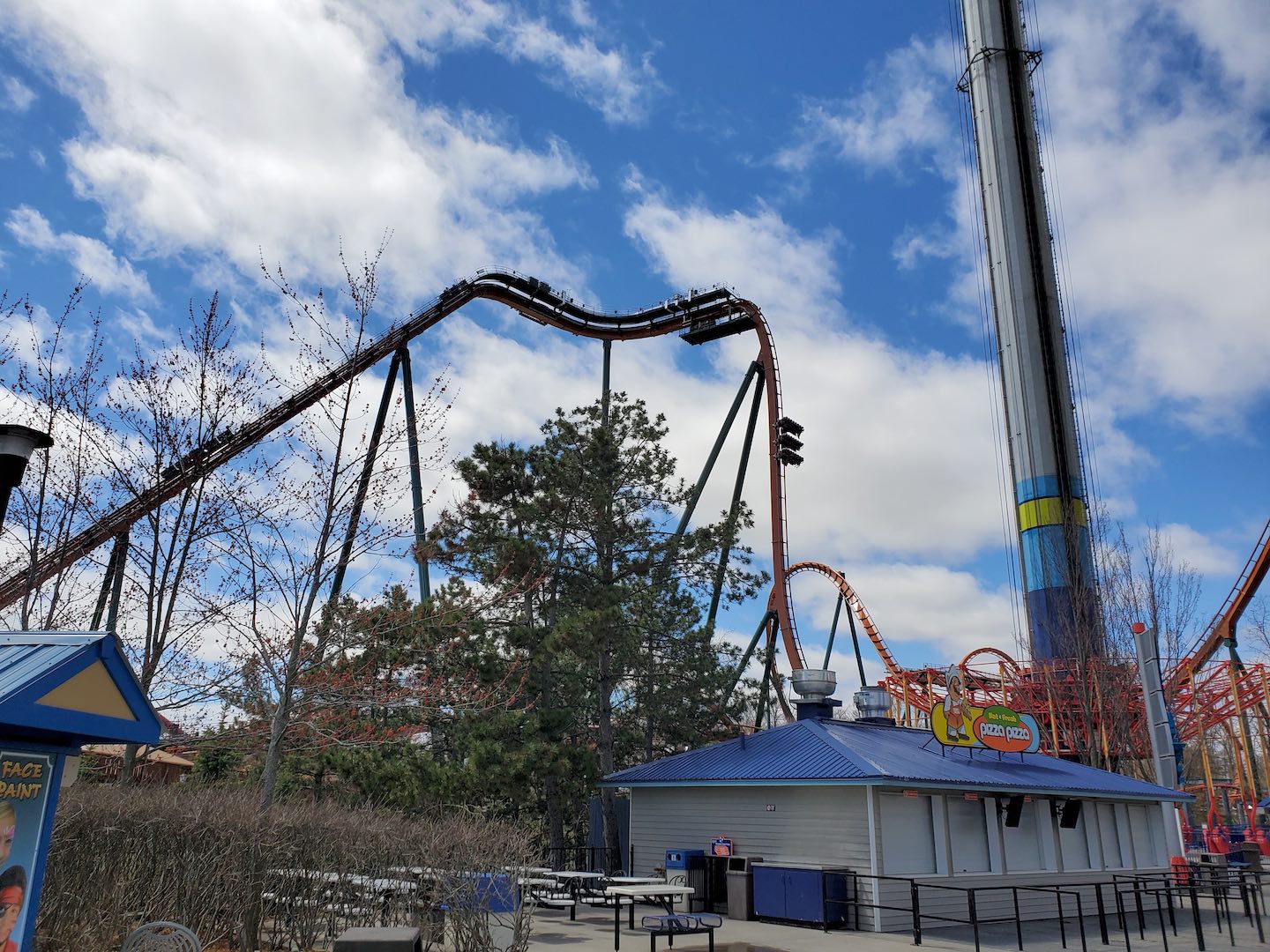 Yukon Striker is the centerpiece of the new Frontier Canada area, which was part of the original plan for the park but never realized until now, so it has been 38 years in the making. Elsewhere in the new Frontier Canada area, guests can experience new food and gift shop outlets. Vortex, which started its transformation last year with the trains being painted to match the theme, received an all-new logo, replacing the one it had since it opened. The station for Yukon Striker sits at the edge of the waterpark and the entrance to the Mighty Canadian Minebuster, also part of the original plan for Frontier Canada. A new trail was created as a short cut from the Behemoth area over to the Frontier Canada. This necessitated the removal of the Huss Skylab (one of the park’s original rides).