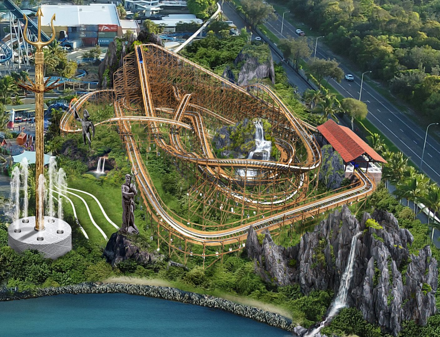 Announcements of roller coasters planned for 2020 continue to trickle out. Martin & Vleminckx (M&V) has recently revealed Leviathan. Not to be confused with a gigantic steel beast of the same name in Canada, this Leviathan is a wooden creation. To be built by M&V, the woodie is being designed by The Gravity Group and will feature two Timberliner trains from its partner company GravityKraft. The sea monster’s home? Sea World in Queensland, Australia.