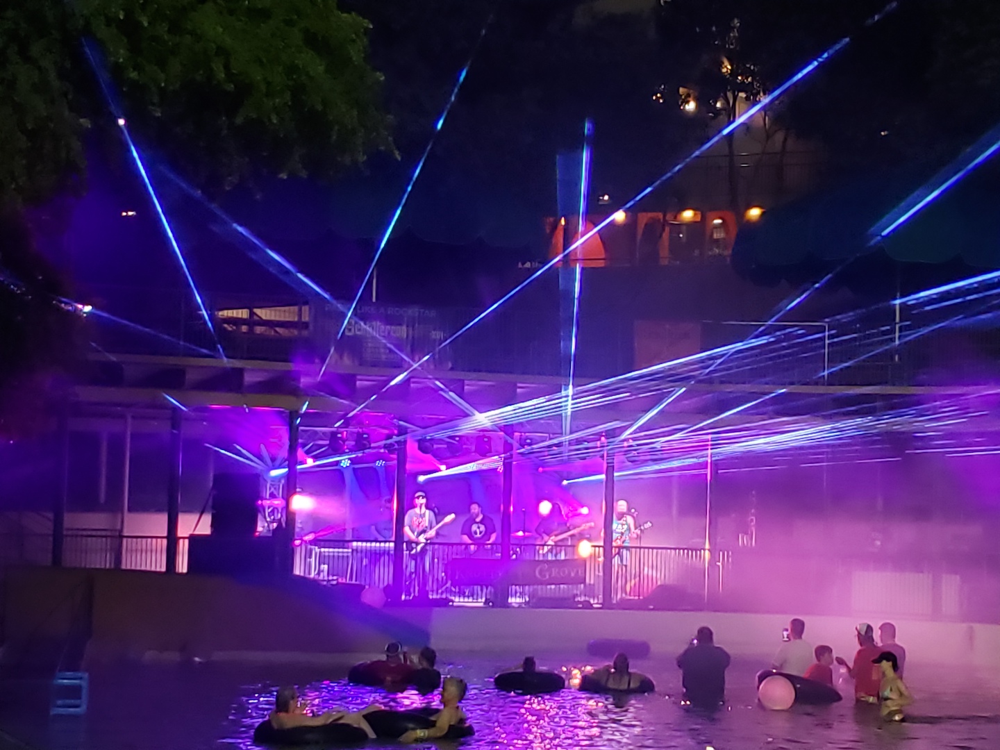 At park closing, attendees met for exclusive access to the Hillside tube chute and Lagoon activity pool. The evening continued with a dessert bar and more hot tub time and adult beverages. The grand finale of this year’s event was a full rock concert by the amazing rock cover group Knotty Grove, complete with concert lighting and lasers. Members and their guests all rocked out, from the comfort of dry land, a relaxing spot in the hot tub or up close and personal in the Lagoon activity pool. After more than a full hour bringing down the house, it was sadly time to bring this year’s event to a close. As they were leaving, many attendees commented this was the best Schlittercon ever, and all are looking forward to what may come at next year’s Schlittercon 17.