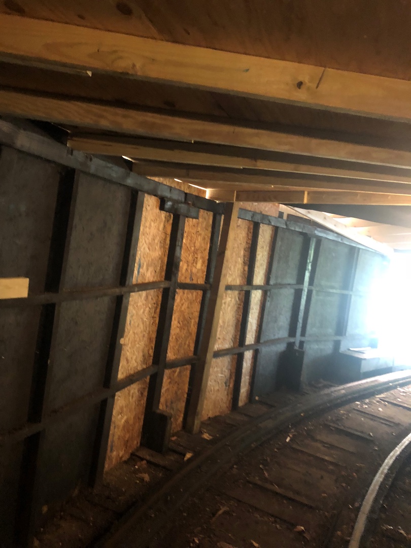 Work has been completed on restoring the famed long and winding tunnel on Conneaut Lake Park’s (Conneaut Lake, Pennsylvania) Blue Streak wooden coaster. Ride Maintenance Supervisor Leonard Adams III remarked recently that work on getting the tunnel back into shape started about two years ago. He noted that it has indeed “taken a lot of work, a small crew, and some time and money” to complete. The project was finished this year, all in time for the park’s opening on Memorial Day weekend. The tunnel had been suffering deteriorating over the years with holes and gaps in the walls and much of the roof missing. Mr. Adams assured us there’s “very little light coming through” now, with only a very minor bit from under the track sneaking in. The tunnel is enclosed “nice and tight.”