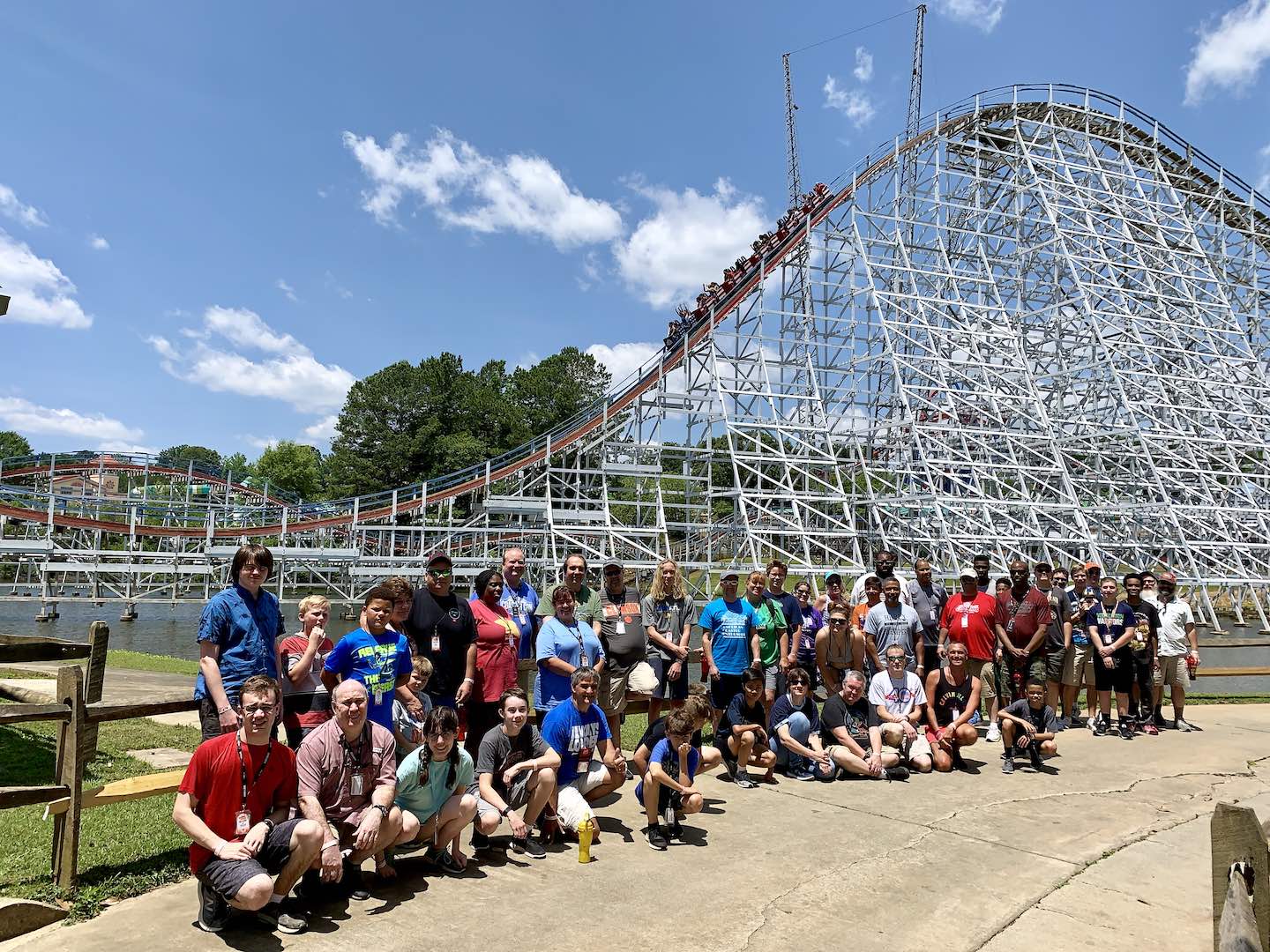 On Saturday, June 1, 53 ACE members and their guests gathered at Six Flags Over Georgia for the first Spring Fling event in two years. The 2018 event was unfortunately cancelled, so everyone was excited to get some ERT on the newest coaster in the park, 2018’s Twisted Cyclone. An hour of morning ERT on the twisted teal blue track was a great wake-up call for attendees, and with the park running two trains, everyone was able to ride as much as they wanted without moving seats if the row was empty.