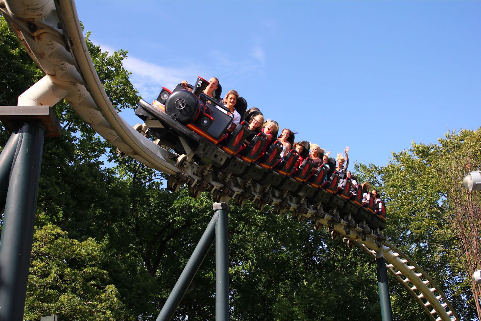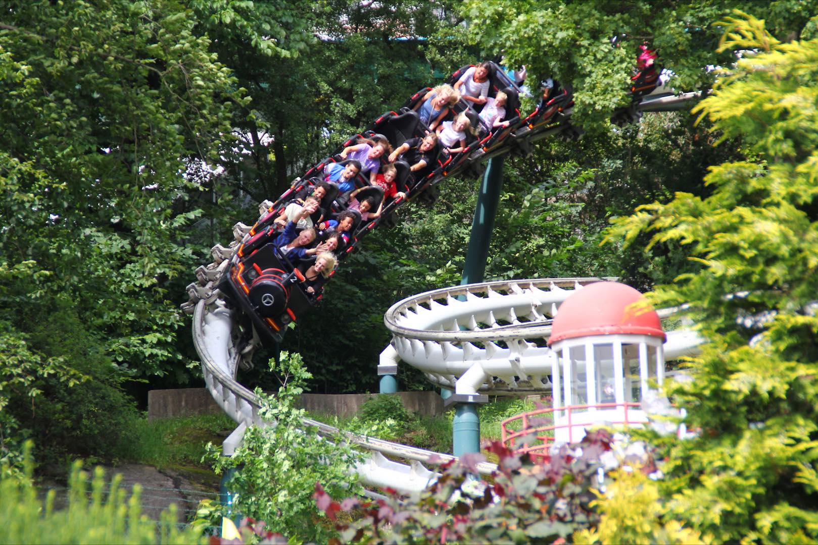 Alleged to have been one of Schwarzkopf’s favorites, the 4,397-foot coaster was touted as Europe’s biggest when it opened in 1987, as it wended and weaved its way around a large park hill. Though no longer the lengthiest in Europe (U.K.’s 1991 The Ultimate takes that claim), Lisebergbanan remains long and large in its fame and high regard as an exceptional mine train-style coaster.