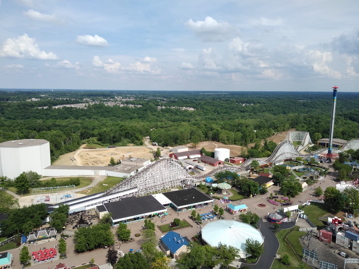 Interest is so intense over early indications that Kings Island (Mason, Ohio) is building a new roller coaster for 2020 that a local television station (WCPO, Cincinnati Channel 9) flew a helicopter over the park to confirm that work is under way. And the station confirmed it -- drilling rigs have been burrowing holes for the presumed new coaster’s piers, and bucket loaders are pouring gravel and concrete for the foundation – all occurring in an area on the north side of The Racer, where Firehawk and Dinosaurs Alive used to stand.