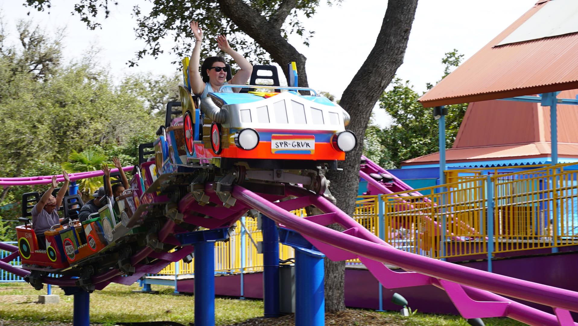 The Zierer Shamu Express kid-friendly steel coaster, with cars shaped like whales, offered its last rides under that name and theme at SeaWorld San Antonio (Texas) when the park closed out its 2018 season on January 6, 2019. But fear not, the ride re-emerged, newly themed and renamed with the February 23 beginning of the park’s 2019 season as Super Grover’s Box Car Derby.