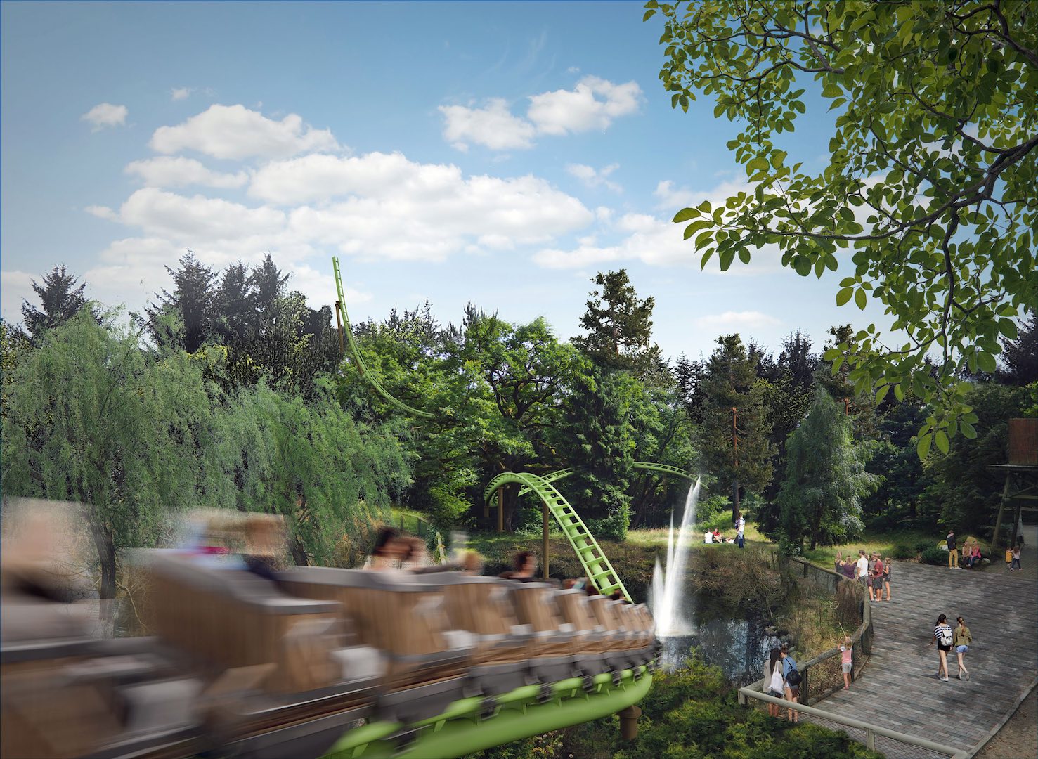Fårup Sommerland (Blokhus, Nordjylland) in Denmark has announced a new coaster for 2020. To be named Saven (Danish for “Saw”), the steelie will be a custom Vekoma family boomerang shuttle, coming in at 78.7 feet high and 780 feet long, with some twists and turns along that length, even splashing over a pool of water before diving into a tunnel.
