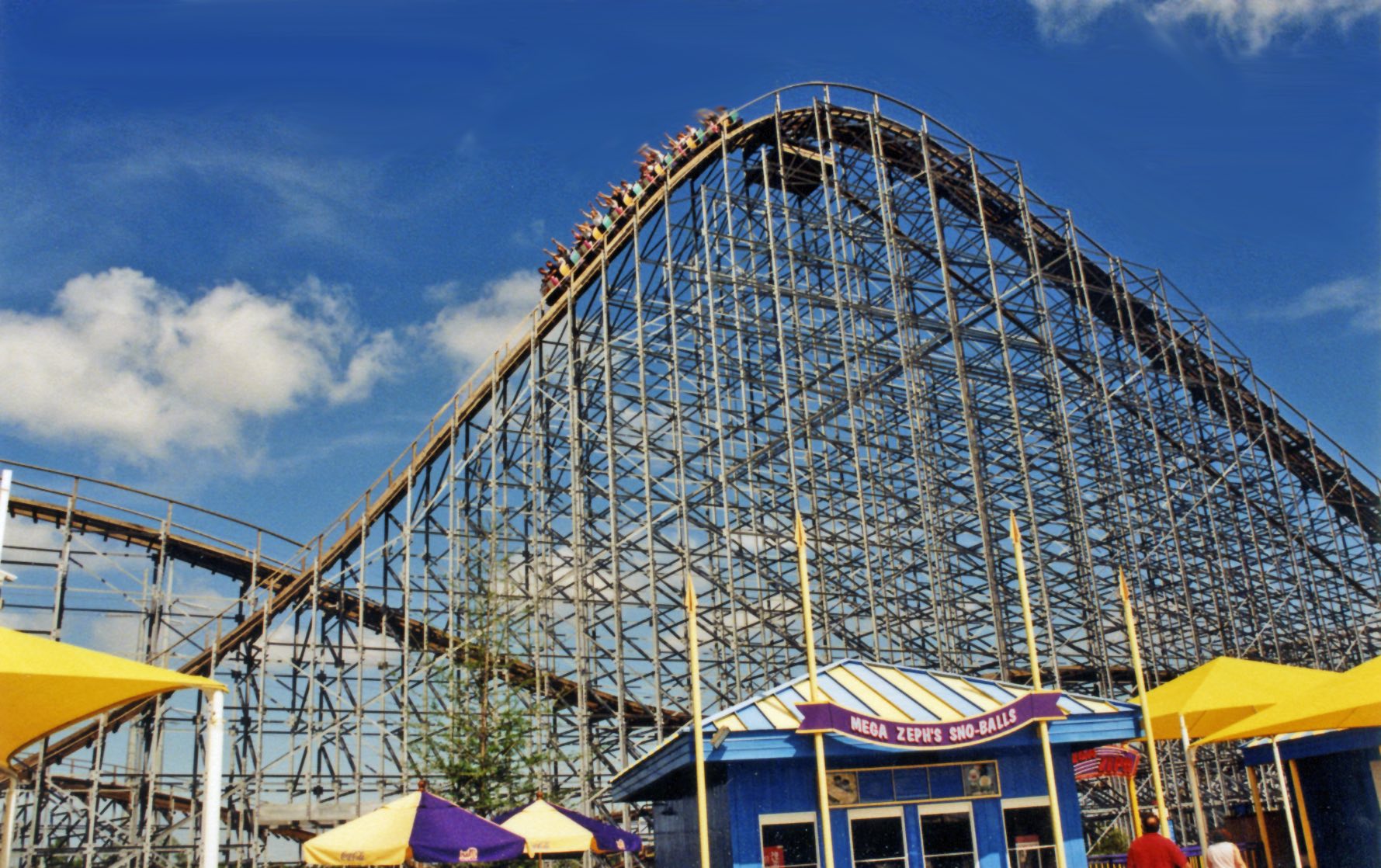 Hurricane Katrina flooded New Orleans in 2005, badly damaging Six Flags New Orleans theme park. After management decided not to reopen (alleging it was beyond repair), the derelict park and most of its attractions were left to stand, forsaken, steadily deteriorating in the 14 years since. The still-abandoned rides include four of the park’s coasters: Mega Zeph (a Custom Coasters International, Inc. woodie), the steel Jester (a Vekoma loop and corkscrew), Muskrat Scrambler (an L&T Systems wild mouse) and Zydeco Scream (a Vekoma Boomerang). Interestingly, two of the park’s six coasters were moved – Batman: The Ride became Goliath at Six Flags Fiesta Texas in 2008, and Road Runner’s Express was transferred to Six Flags Magic Mountain (where it kept the same name) in 2011.