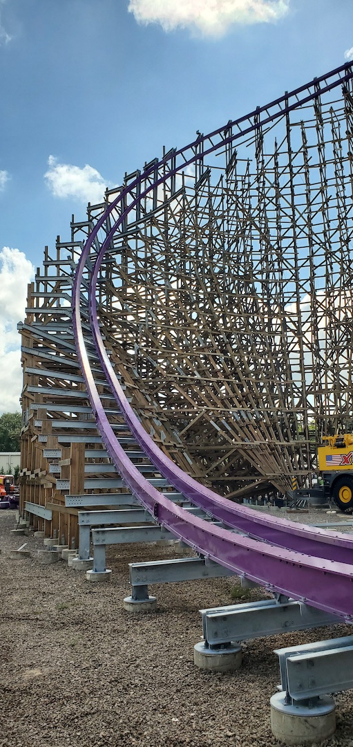 Currently, there is only a single, small section of the wooden supports left over from the iconic dueling coaster. Most of the coaster will be brand new once its 4,075-foot-long course is completed. The new design will feature three inversions.
