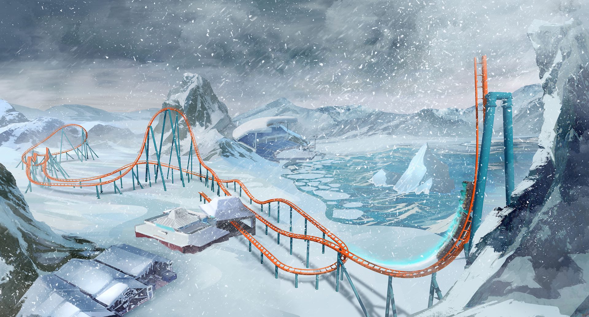 The ride continues forward into a top-hat element followed by multiple airtime and low directional changes. Ice Breaker will feature a family-friendly 48-inch height requirement and can operate with multiple trains. Located in the Wild Arctic plaza of the park, this new coaster will complement the nearby arctic-themed wildlife attractions and exhibits.
