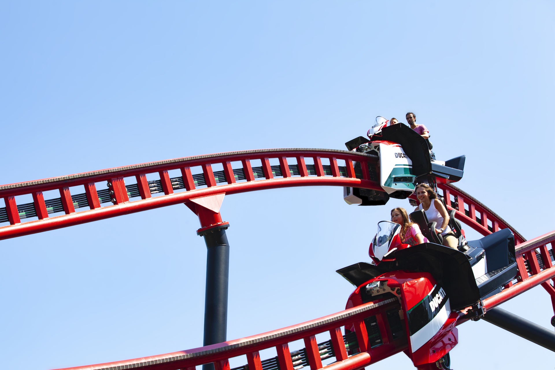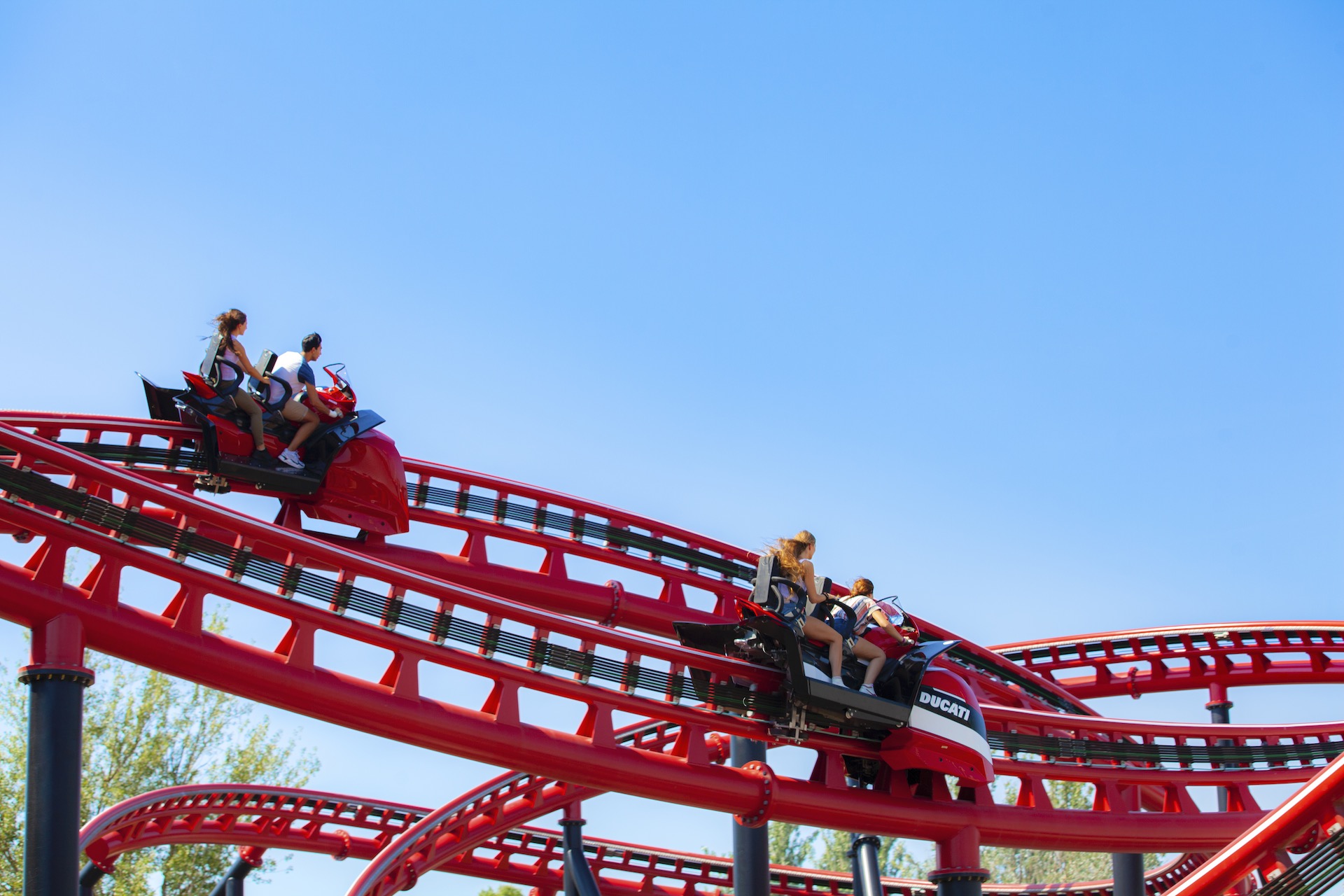 The new Ducati World section of the park is dedicated to the “iconic” motorcycle brand – Ducati originated in this region of Italy. Other rides and attractions in the new section include Scrambler Run, Diavel Ring and Kiddy Monster, small rides for the youngsters themed around Ducati bike names (i.e., Monster, Scrambler and Diavel cycles), plus the Experience Building, containing “cutting-edge” simulators and the motorcycle manufacturer’s models on permanent display, along with an official store (the Ducati Shop) and three food outlets.
