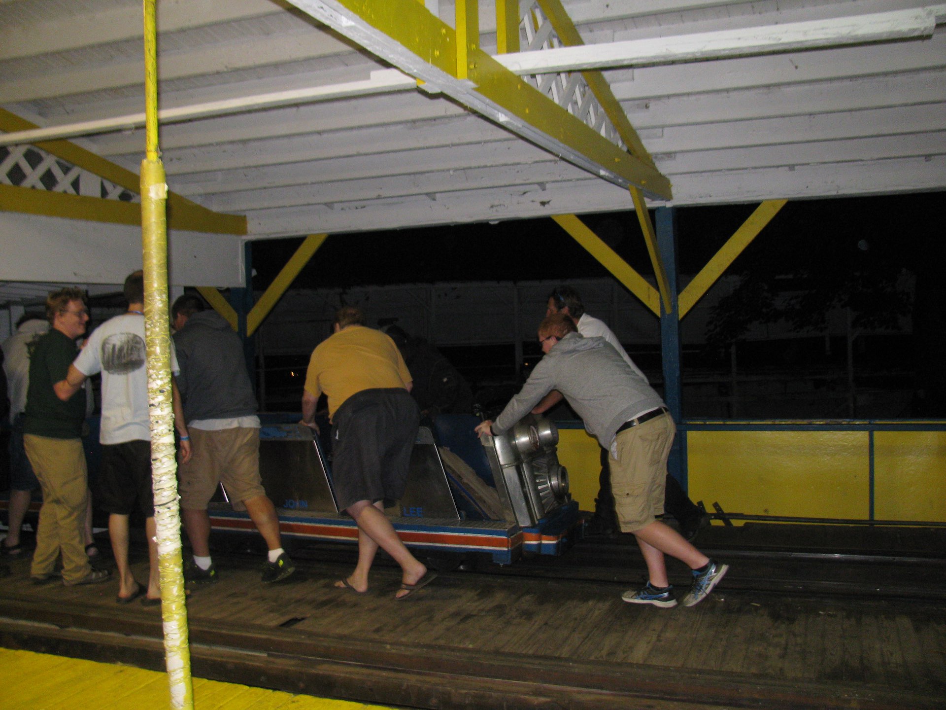 After the park closed at 8 p.m., attendees had an hour of ERT to enjoy Devil’s Den, Tumble Bug and the ride that gave this event its name: the ACE Coaster Classic and ACE Roller Coaster Landmark Blue Streak. After some crazy-in-the-dark wild rides, those who stayed till the end got to help Adams and crew move Blue Streak's train to its transfer track for the night.