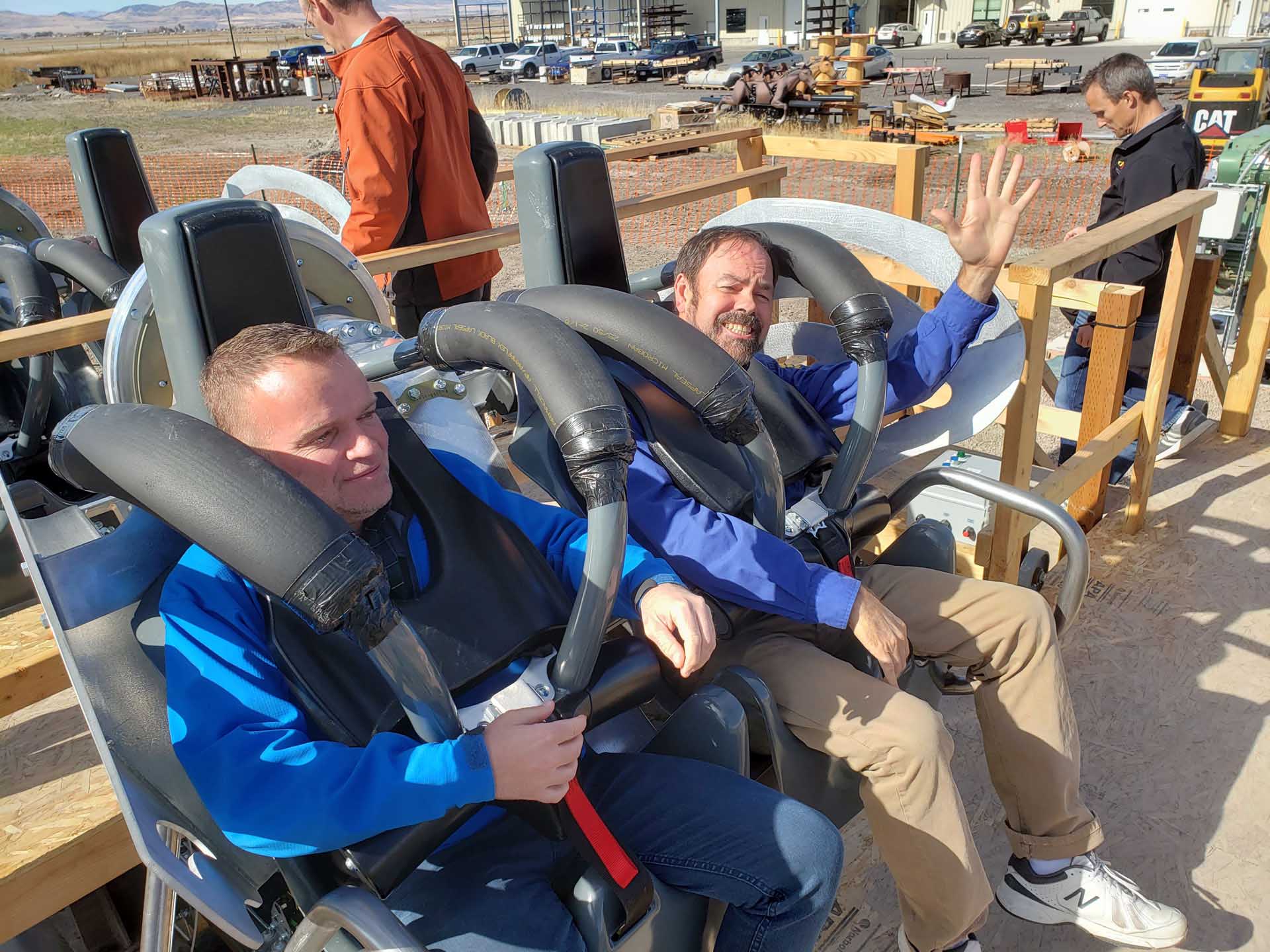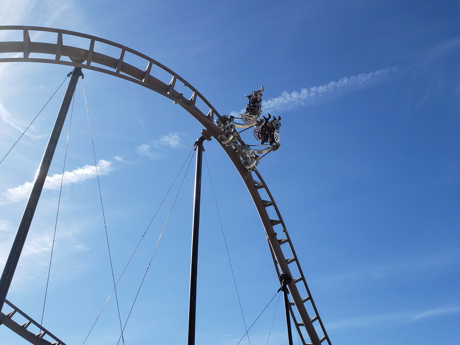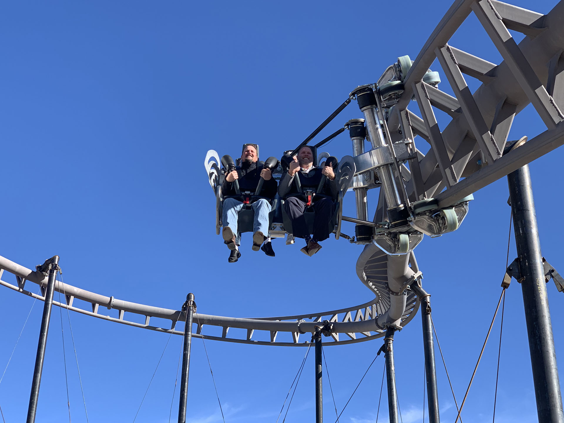 Descriptions are challenging. Axis places passengers in large seats with a swivel behind each pair of riders. Like an old Arrow suspended coaster, forces cause the seats to swing back and forth, and if the transitions are dramatic enough, riders flip upside down. Using the magnetic technology implemented in the company’s 4D Free Spin coasters, forces are dampened to keep the motion from ever getting too frantic or uncomfortable. Test rides have proved that everything works. It’s smooth as glass.