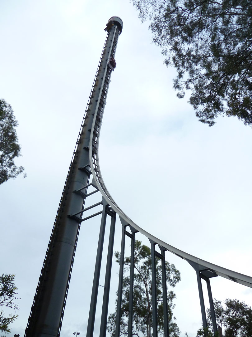 The now-being-dismantled Intamin steel Tower of Terror opened in 1997 at Dreamworld as the tallest and fastest roller coaster in the world then, at 377 feet tall and 100 mph fast — it was revamped in 2010 so riders faced downwards (thus becoming Tower of Terror II).