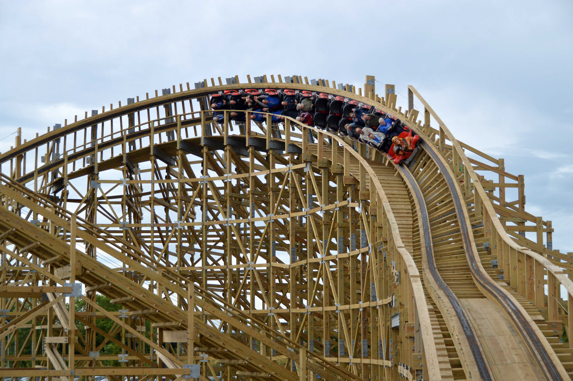 Presumably this extensive retracking and intensive off-season maintenance means the coaster will stay in tip-top condition for years to come. The gorgeous twister, built by Great Coasters International, Inc. and designed by Jeff Pike in 2007, is touted by the park as the fastest (54 mph), highest (105 feet) and longest (3,534 feet) wooden roller coaster in the Benelux countries. Toverland currently operates five coasters. Its newest, Fēnix, a Bolliger & Mabillard steel wing coaster, opened in 2018.