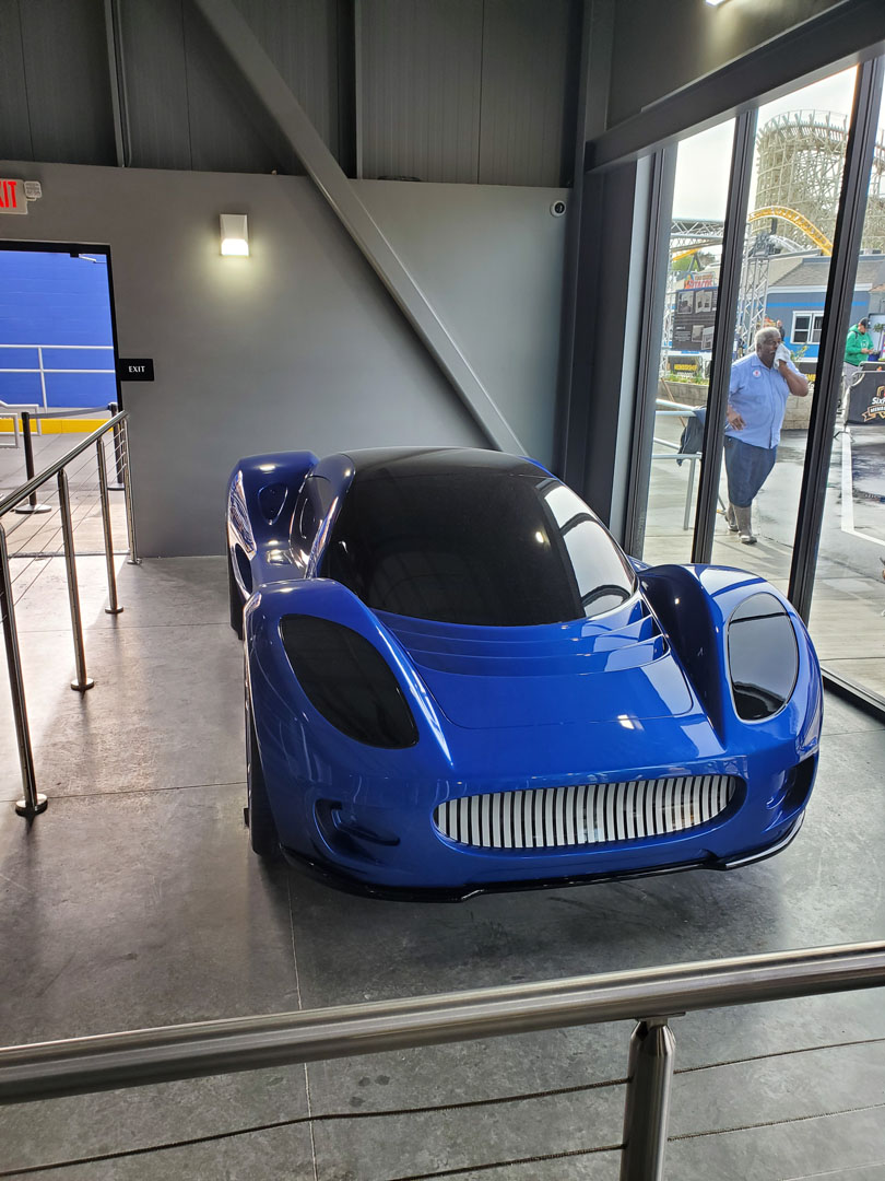Ryan Friedlinghaus, the CEO of West Coast Customs, helped design the trains which look like custom sports cars. Each train features two cars with three rows of two seats. The restraints consist of both lap bars and the rather unpopular comfort collars, seen on other coasters by Premier Rides such as some of the Sky Rocket II models.
