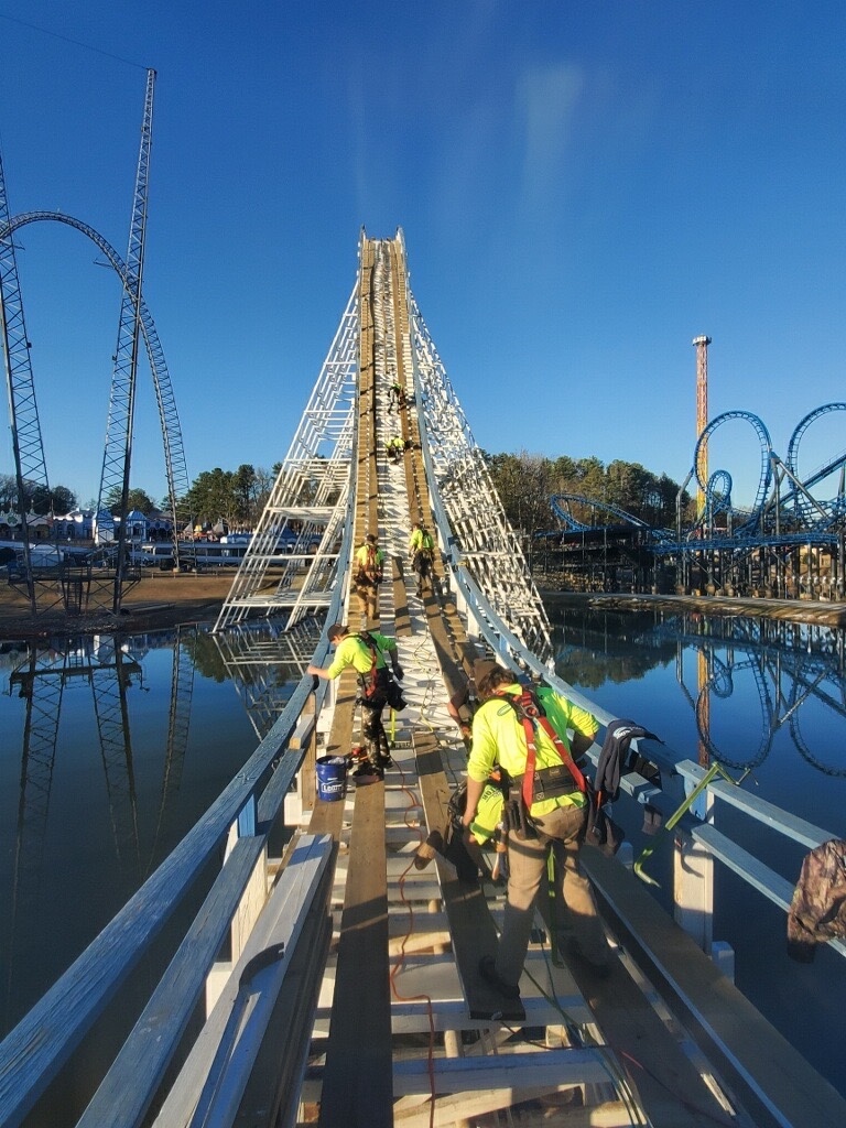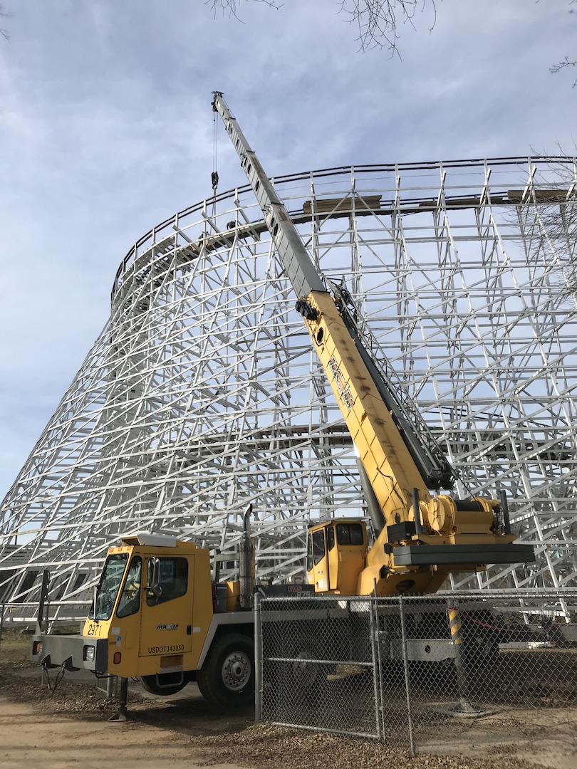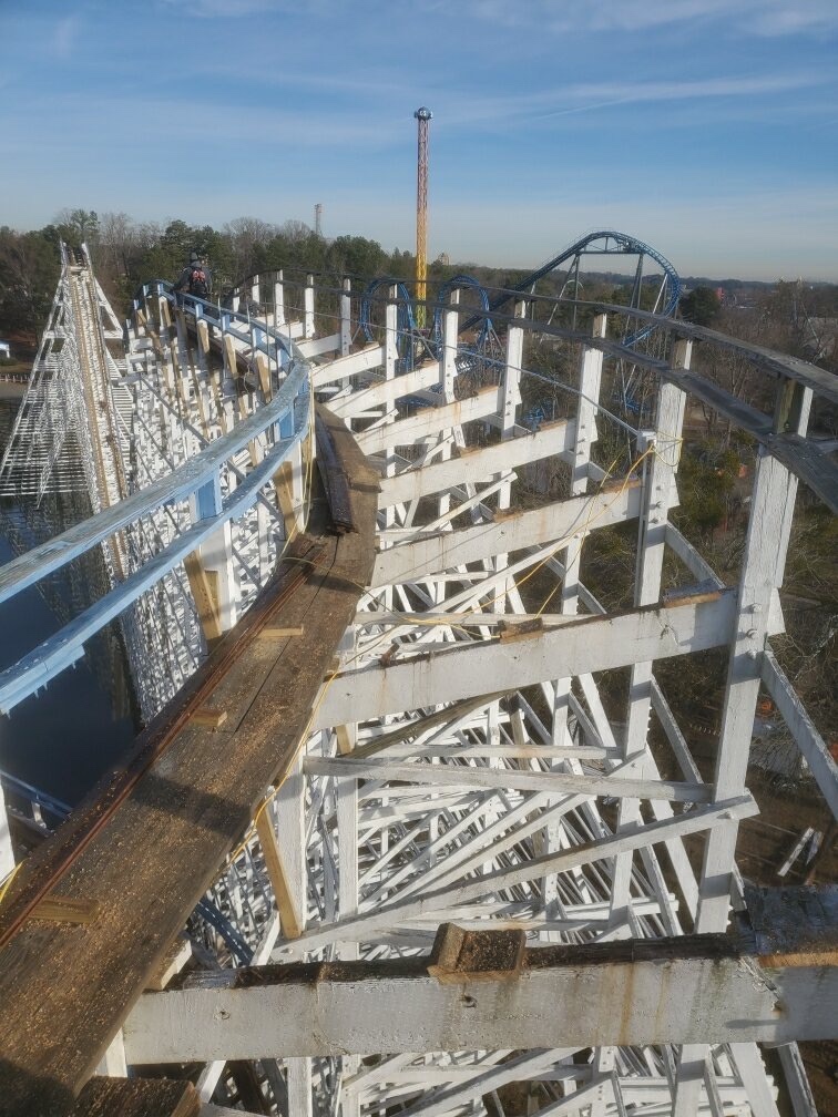 The Great American Scream Machine wooden coaster at Six Flags Over Georgia (Austell, Georgia) is benefiting from some TLC, with retracking work being completed during the off-season. Amuse Rides is in charge of the refurbishment.