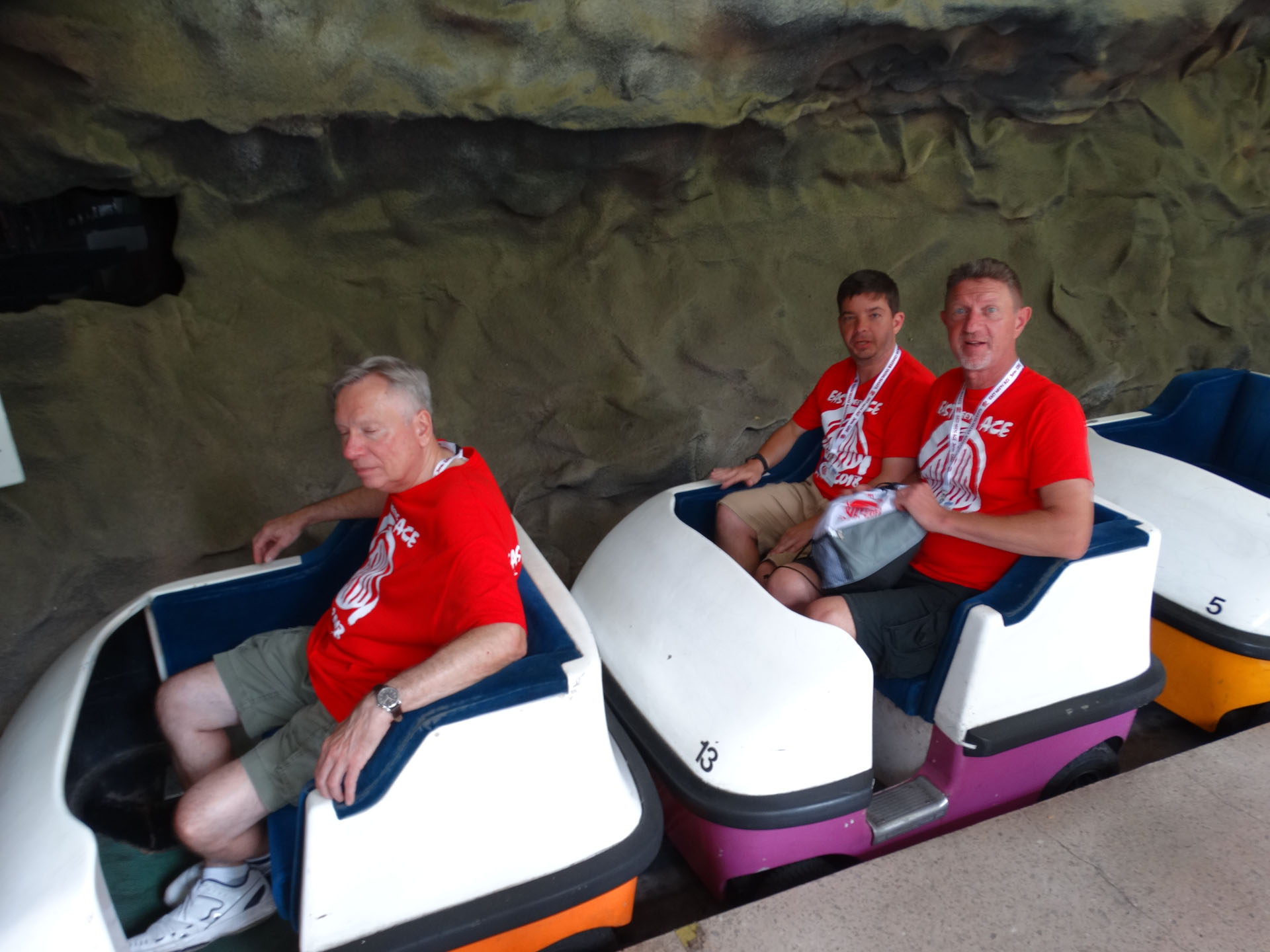 ACE members were delighted by Toshimaen’s charms on the recent international tour. Among its lineup are a dark ride, a flume, a train, a walk-through attraction, a double (giant!) swinging ship ride (on a roof!), a junior coaster, a powered coaster and an Arrow Corkscrew coaster.