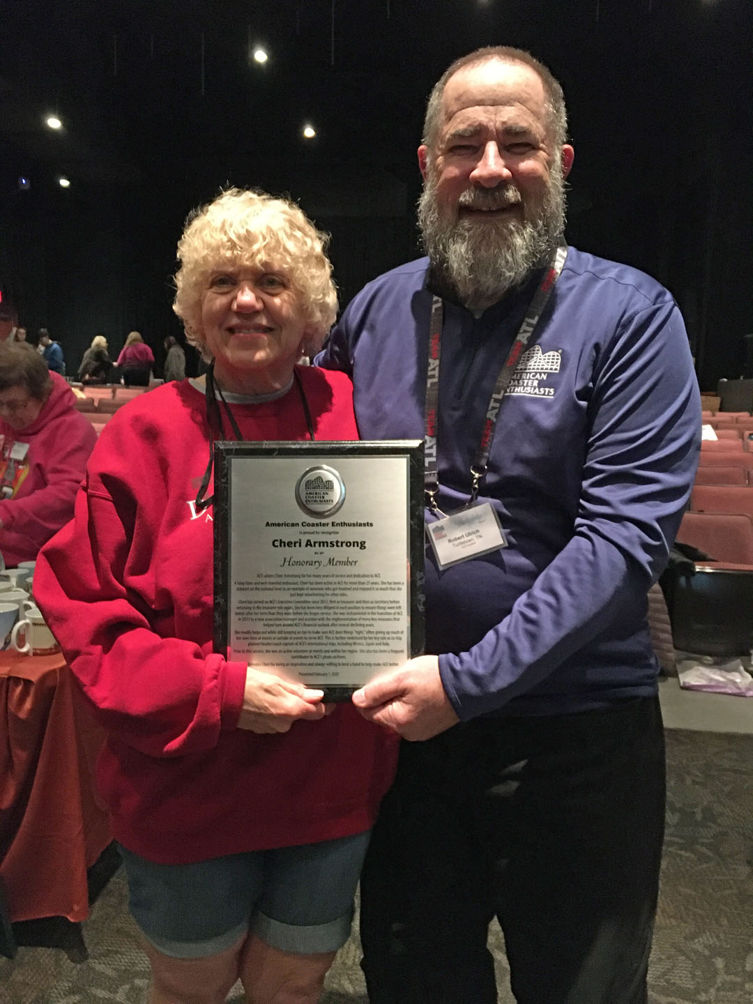 At the recent Eastcoaster event on February 1, ACE President Robert Ulrich presented Cheri Armstrong with a plaque recognizing her as the organization’s newest honorary member. Congratulations to Cheri on this well-deserved acknowledgment. Her plaque reads: