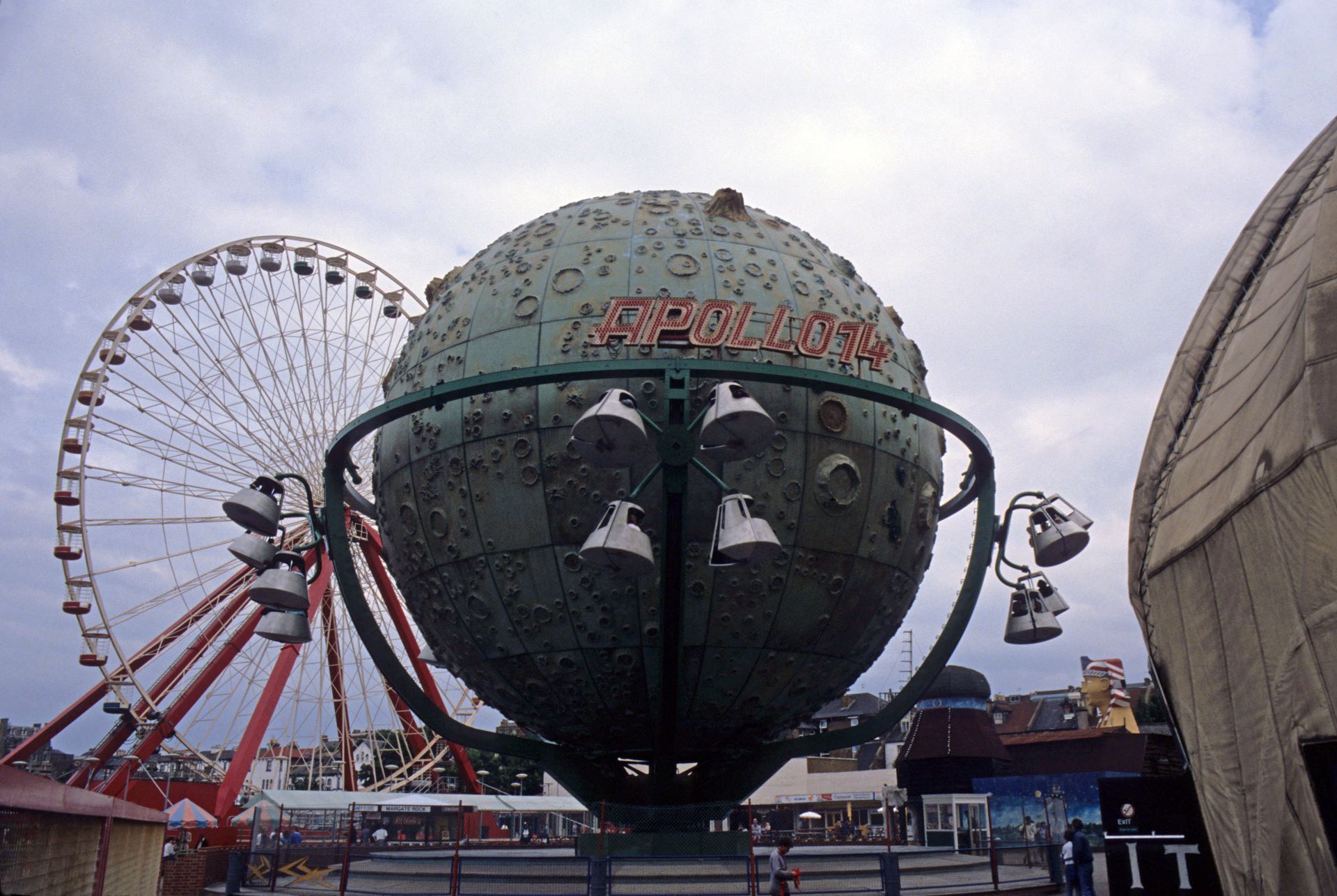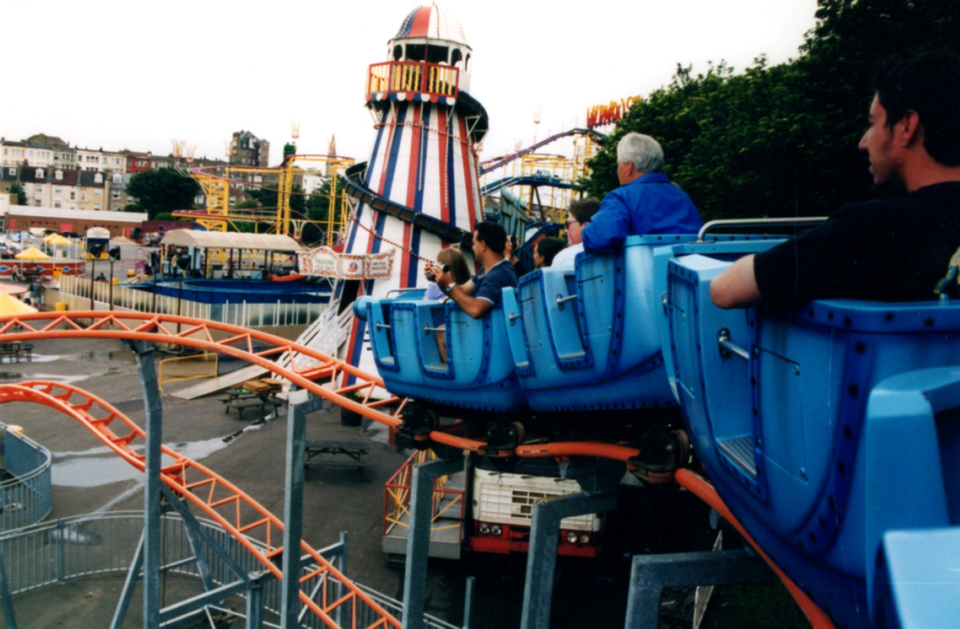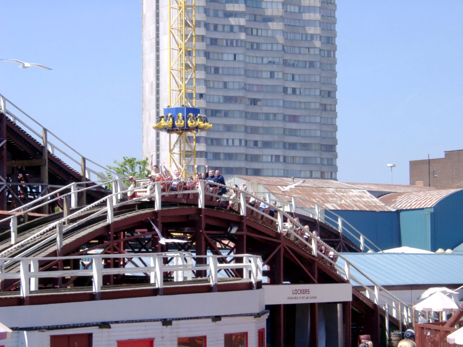 Scenic Railway’s gently thrilling, yet deceptively lengthy, double out-and-back choreography successfully mesmerized riders of all ages until the first closure of the park in 1938 owing to it passing into liquidation, an unfortunate development that may nevertheless have somewhat fortuitously coincided almost exactly with the outbreak in Europe of World War II. Dreamland reopened in 1946 under the ownership of Billy Butlin, an individual probably largely unheard of in North America but whose business acumen, along with an apparent capacity to see into the future, single-handedly shaped the manner in which the populace spent its newfound leisure hours and disposable income in post-war England every bit as much as did that of a certain Walt Disney in the United States. While other rides and attractions came and went as the decades passed, the majestic Scenic Railway continued to proudly serve as a baby boomer rite of passage, in particular for generations of residents of London and the southeast corner of the country, through a variety of park owners and incarnations. Indeed, its name and image were seemingly indelibly branded onto the very social fabric of the era. Almost every citizen of the United Kingdom, even those who had never felt even the slightest inclination to venture as dangerously close to France as the windswept Kent coastline, was somehow at least vaguely familiar with it, possibly largely because of its frequent appearances as a backdrop in television shows and movies.