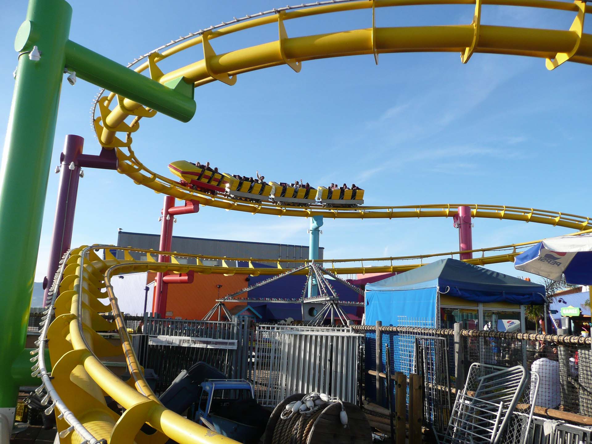 Coaster enthusiasts know the ride as being relatively mild and notably short at 1,300 feet. Standing at 55 feet tall, most of the ride is elevated over other rides and the boardwalk below. The layout features a spiral helix at each end of the pier, with some shallow dips thrown into the mix. A dramatic plunge to pier level at the end makes for a good finale.