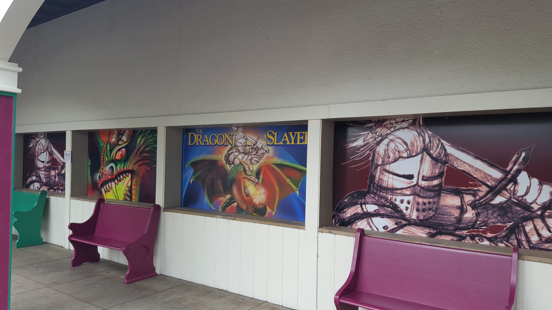 Engaging artwork at the former Dragon station teases the upcoming coaster. View full-sized image.
