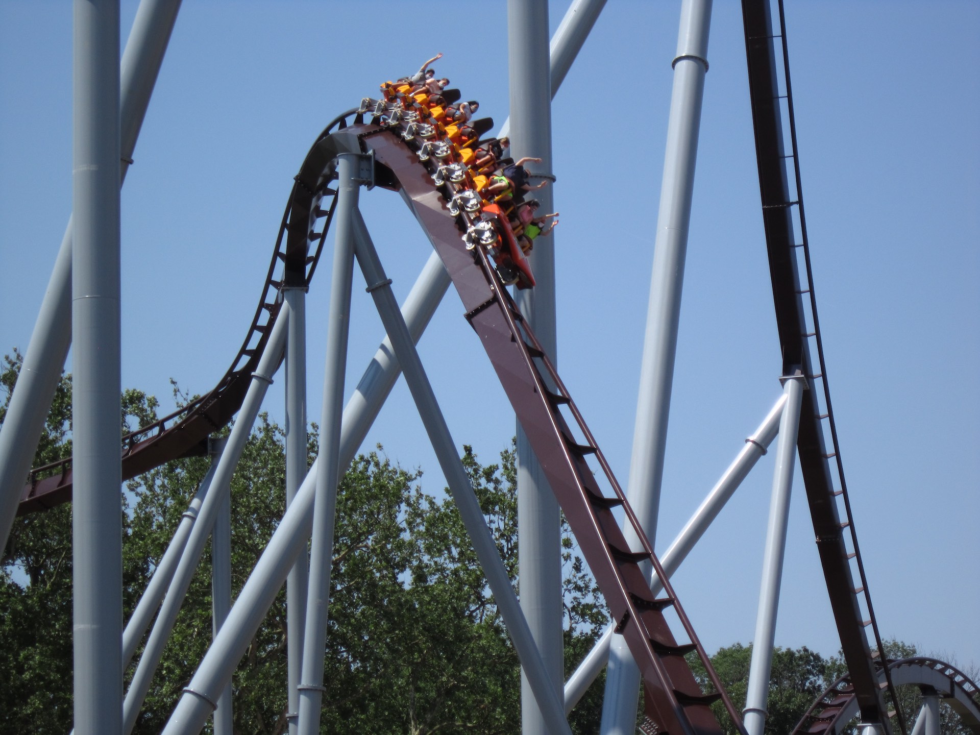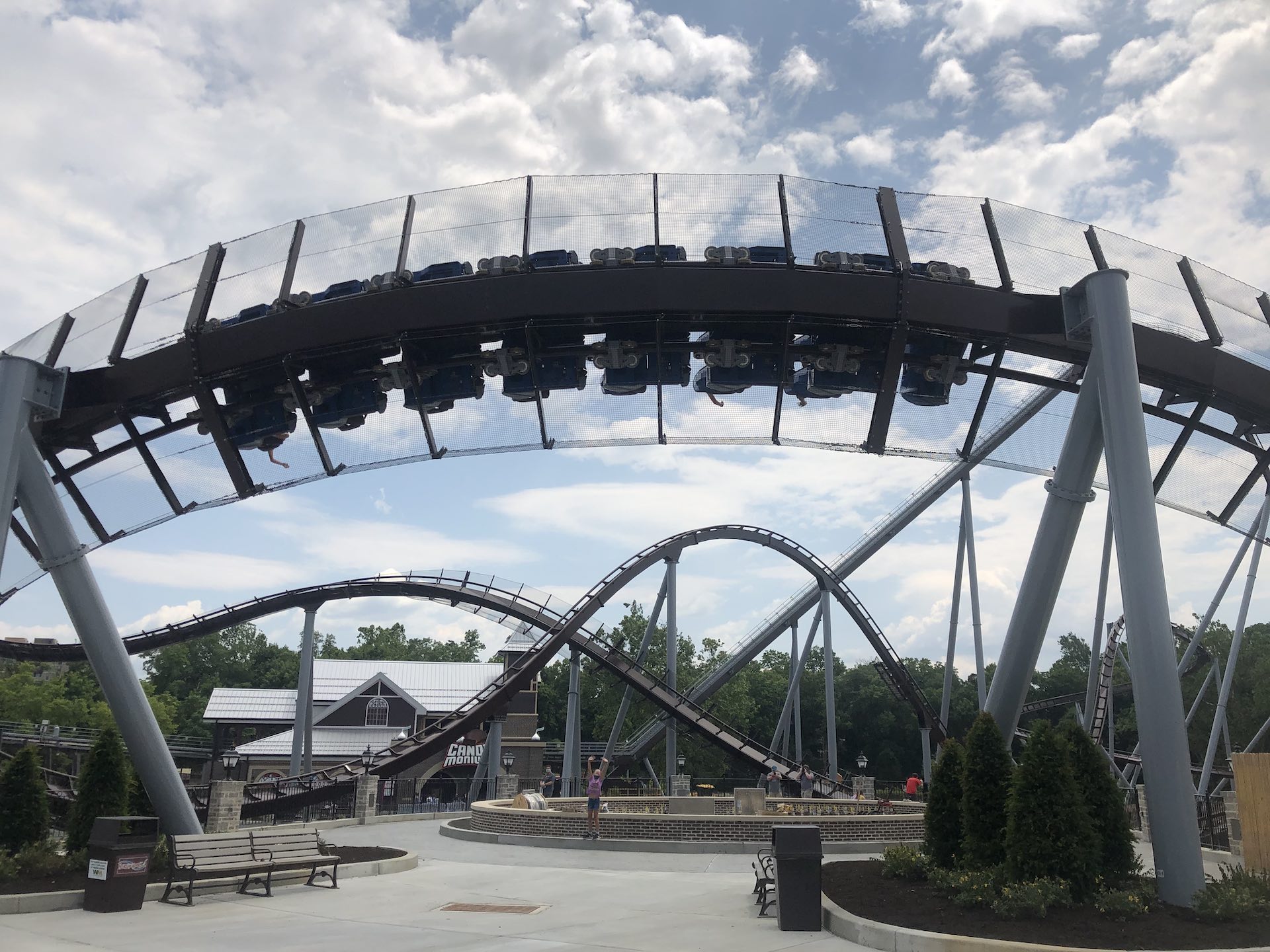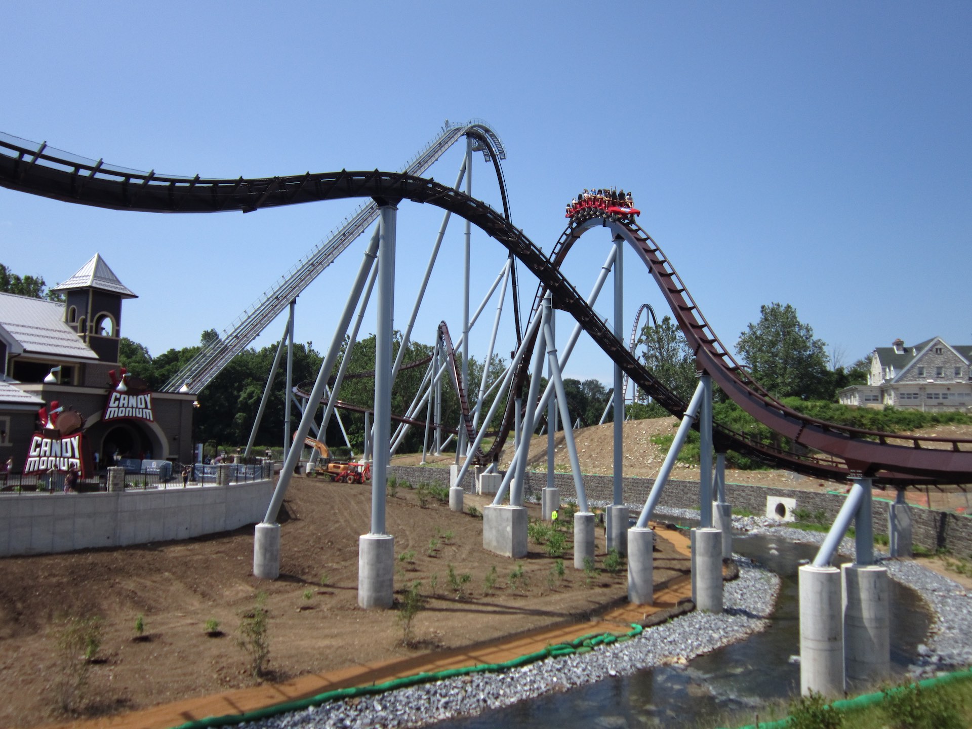 According to the local media news and previous reports in late 2019, the information stated that Candymonium and Skyrush were supposed to cross paths with each other. Unfortunately in that regard, the park built the new Candymonium separately from the Skyrush structure. However, if a rider is able to pay attention and count how many times Candymonium crosses over Spring Creek, the actual number is 10.