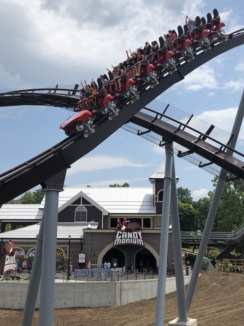 Candymonium, a one-of-a-kind Bolliger and Mabillard (B&M) hypercoaster, spans seven acres in the all-new region, Hershey’s Candymonium. According to the park’s website, the out-and-back roller coaster is the tallest, fastest and longest in the park.