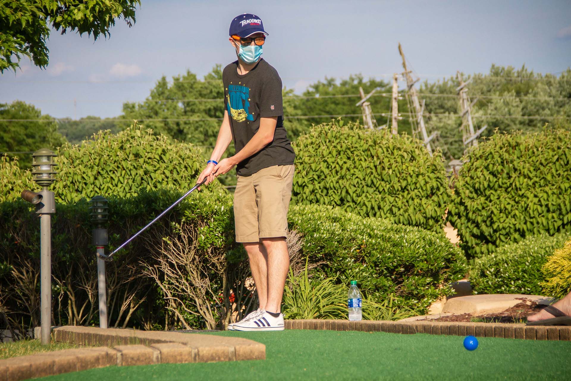 Austin Krieger tackles one of the challenging holes on the miniature golf course.
