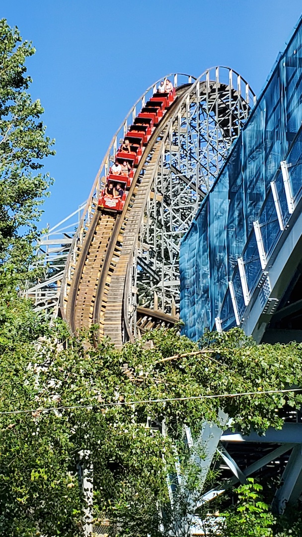 After the Q&A, attendees were on their own to enjoy the rides and the waterpark. No informal takeover times were scheduled, but attendees had many choices among Waldameer’s eclectic collection of new and classic rides. Unfortunately, because of COVID-19 concerns, the Pirates Cove walkthrough was not open, but the L. Ruth Express Train provided great views of the park from the ground, and Sky Ride and XScream Drop Tower offered equivalent awesome views from the air. Besides Whirlwind, coasters not to be missed were the ACE Coaster Classic Comet and the Maurer Rides spinning coaster, Steel Dragon.