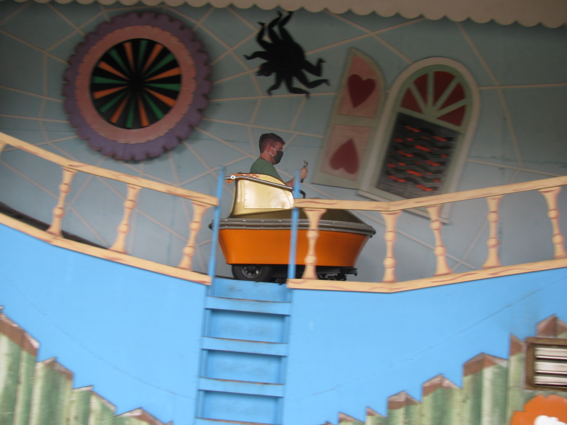 Skalos, who first rode Whacky Shack the year it opened, commented on recent updates to the ride. Skalos acquired two sound tracks from the (defunct) Idora Park (Youngstown, Ohio) Whacky Shack, one of which is being used in the striped room this year. The other track is being digitally restored for use next year. It will replace the current Whacky Shack’s sound track, which over time has deteriorated.