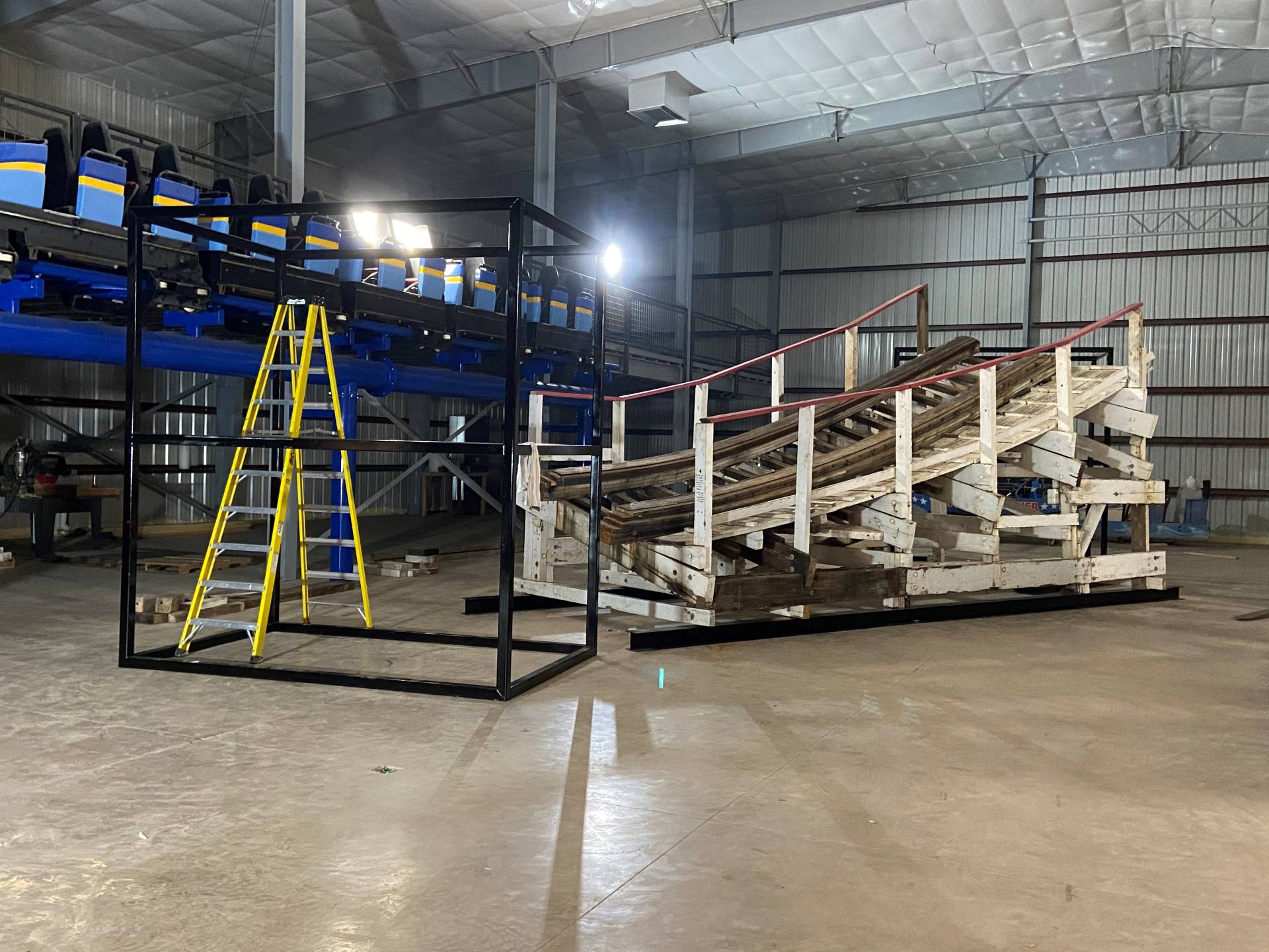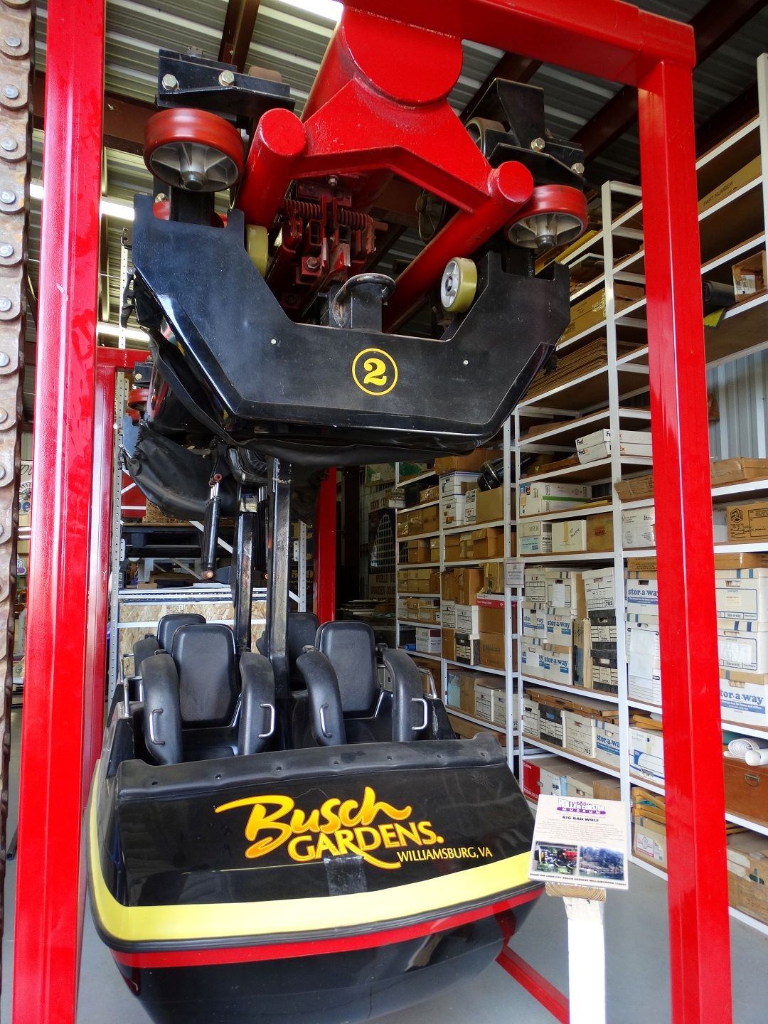 In addition to preserving cars, models, blueprints, signage and more, the National Roller Coaster Museum is a treasure trove of Easter eggs for enthusiasts such as members of ACE. The mezzanine is constructed from repurposed wood from Gwazi. A section of track from Big Bad Wolf serves as the spine support to the staircase leading to the mezzanine. The steps are actual ledgers from Mean Streak.