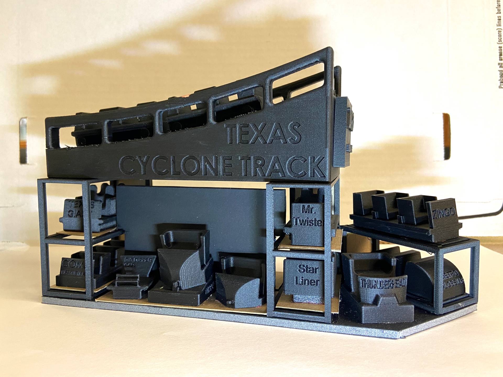 Sections of Texas Cyclone track have been brought into the new museum space for display.