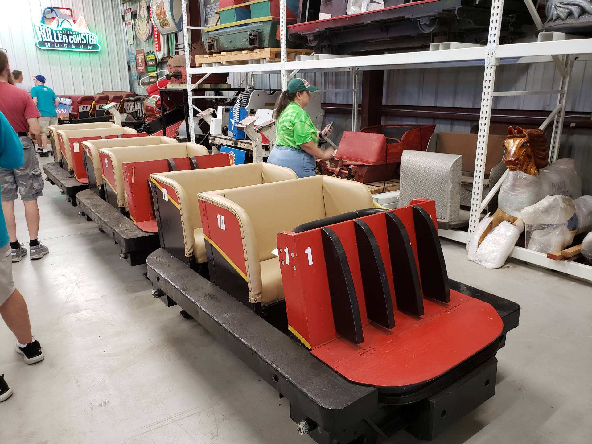 Over the past decade, small groups of ACE members have visited the National Roller Coaster Museum and Archives (NRCMA) storage facility in Plainview, Texas. Over time, the facility tripled in size. The first building was made possible by ACE donations. Once filled, donations from Gary and Linda Hays of Cliff’s Amusement Park and the Knoebel family prompted two more buildings which also contained a climate-controlled room that currently houses major collections of blueprints and other archival material. In all, those three warehouse rooms, plus the archival room totaled 7,480 square feet. ACEers who have seen it have enjoyed the vast array of coaster vehicles, signs and models that have been preserved.