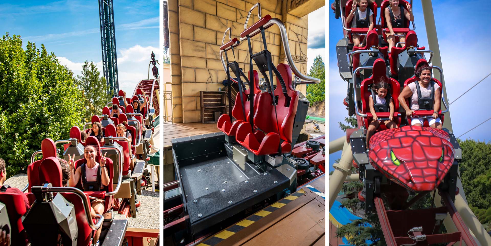 Continuing the theme of new trains, Conny-Land (Lipperswil, Switzerland) turned to Sunkid for a reimagined train for Cobra’s 10th anniversary. The PAX coaster now has a new seating configuration, in which riders sit back to back and also face to face (except for the very front and back rows).