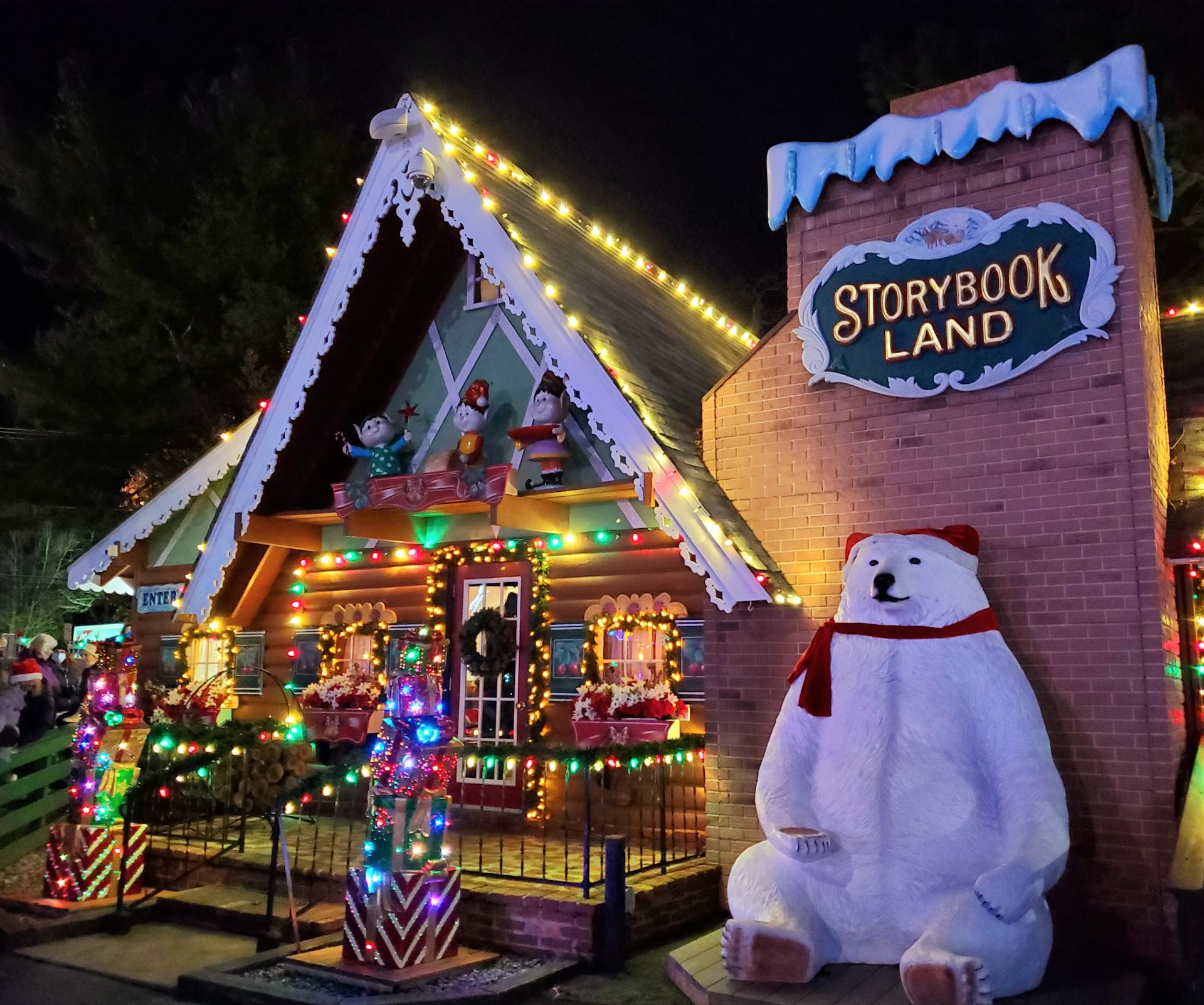 Because of the park’s reserved attendance and strict capacity limits during the pandemic, it wouldn’t be appropriate for (mostly grown-up) ACE folk to occupy precious space in the park on a weekend that rightly belongs to families with children, especially at a generous ACE discount; so the best solution was a late-afternoon-to-evening event. Indeed, the scheduling is likely the cause of the lowest attendance for this event in its history. Distancing rules also prevented a group photo or, sadly, a meetup with management. No matter, pre-opening ERT was held on Bubbles the Coaster, Tick Tock Clock Drop, and a few other favorites that just happened to start up early. As always, Santa Claus popped out of his chimney at 5 pm to wave his magic wand and light all the lights of Storybook Land, which never fails to create a moment of true enchantment.
