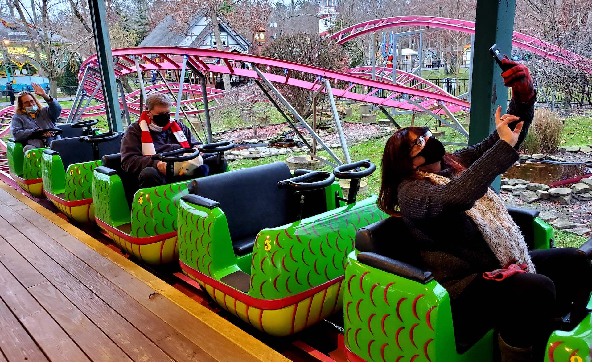 The group of ACE members, small as it was, included reliable regulars along with a few first-timers and the inevitable handful who hadn’t visited the park in years, or even decades. It’s never tiresome to hear again and again: “I forgot how much fun this place is!” Attendees appreciated the friends at Storybook Land, particularly Jessica Panetta, third-generation owner of the founding Fricano family, and Operations Director Bill Melfi, for all the fun and friendship and for never letting members down, even in these troubled times.