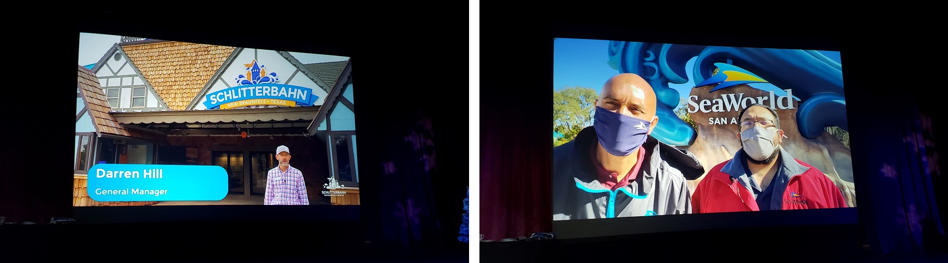Restrictions dictated Schlitterbahn and SeaWorld San Antonio send video presentations.