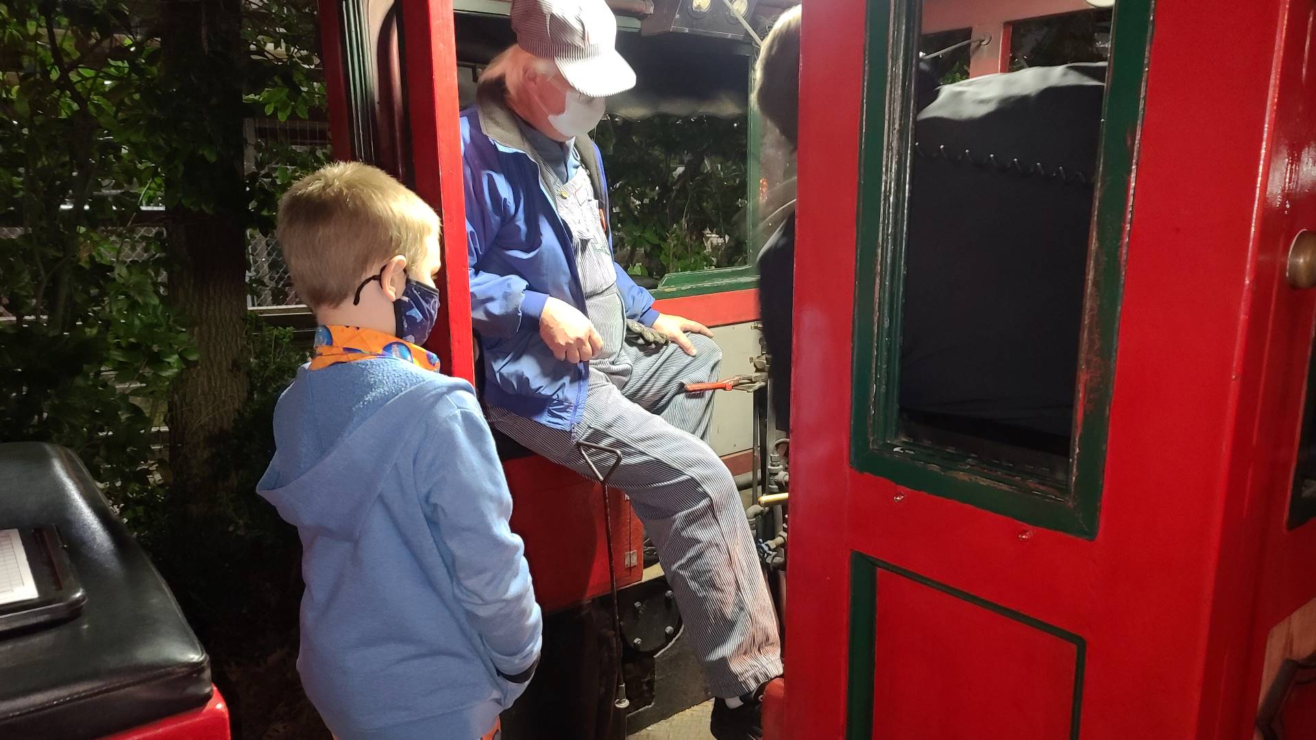 Grayson Knutson enjoyed seeing the park’s train up close, a favorite moment of his during ERT.