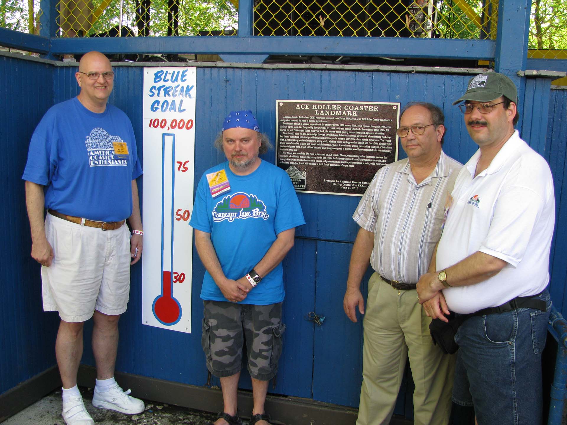 Blue Streak was designated as an ACE Roller Coaster Landmark at Coaster Con XXXIII in 2010.
