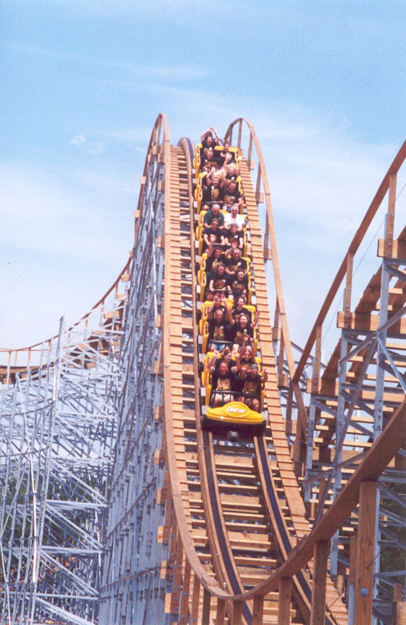 Built by Custom Coasters International (CCI) in 2001, the ride stands 92 feet tall and has a track length of 2,680 feet. The layout of the ride featured an out-and-back beginning with a figure-eight finale.