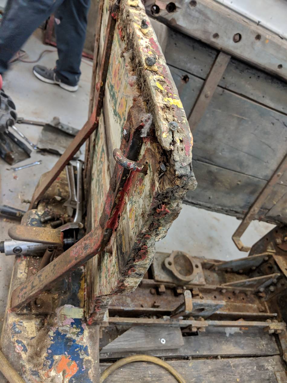 In November of 2018, the car was on its way to Lake Compounce for restoration, expected to take up to eight months. As the work progressed, the team at Lake Compounce found some of the wood was severely rotted and would have to be replaced, even though everyone involved wanted to use as much of the original wood as possible. They also built a frame so the car would sit in the proper position.