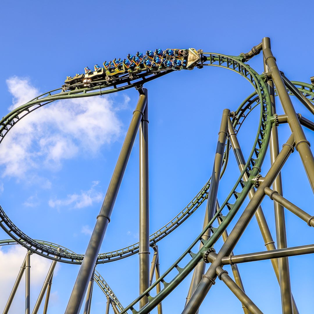 Be sure to note the inline roll that follows the dive from the launched coaster’s top hat element. That maneuver should be taken at incredible speed, which should provide some notable intensity to this multi-inversion thriller. Five inversions — a zero-G roll, cobra roll, Immelmann and vertical loop — are wrapped in the tight layout. The height of the top hat element surpasses 203 feet. The coaster is a product of Mack Rides.
