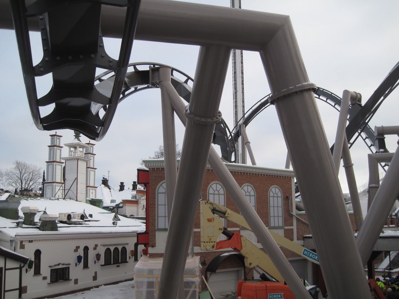 Always tight on space, Gröna Lund has ingeniously found ways to weave new coasters into the park. This Bolliger & Mabillard inverted coaster redefines “being shoehorned” into place. The underground station has a New York subway vibe, and one of the ride’s supports actually pierces into a new Bavarian beer house restaurant.