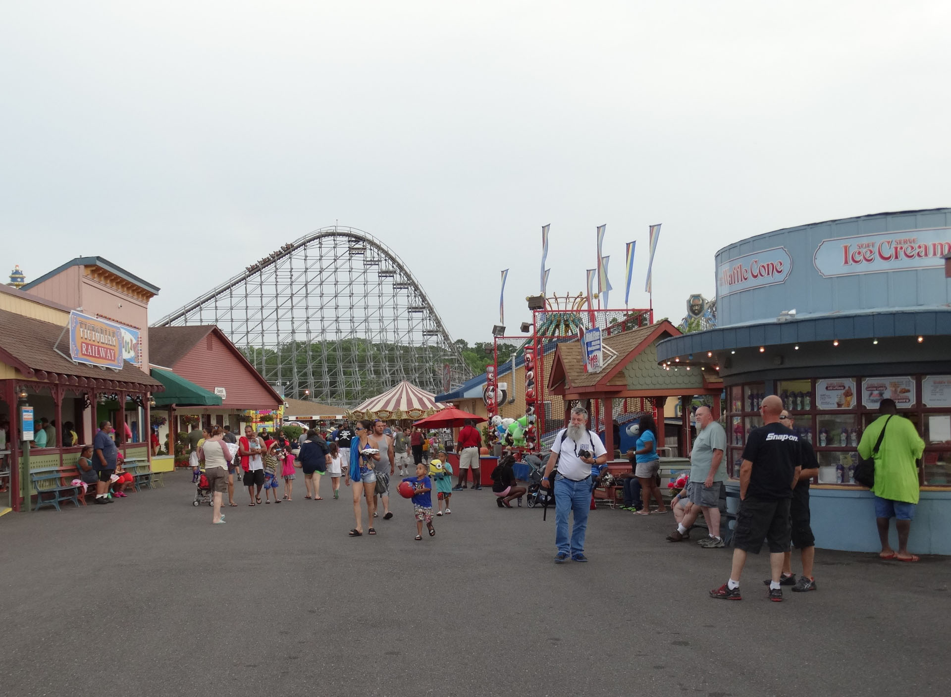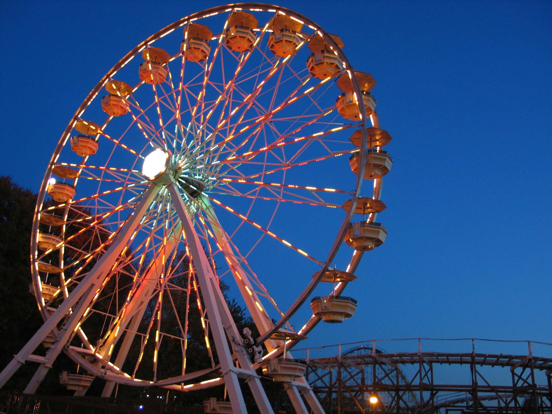 Numerous flat rides are also available: a Scrambler, carousel, Tilt-A-Whirl, Ferris wheel, drop tower, Larson loop and several kiddie rides.