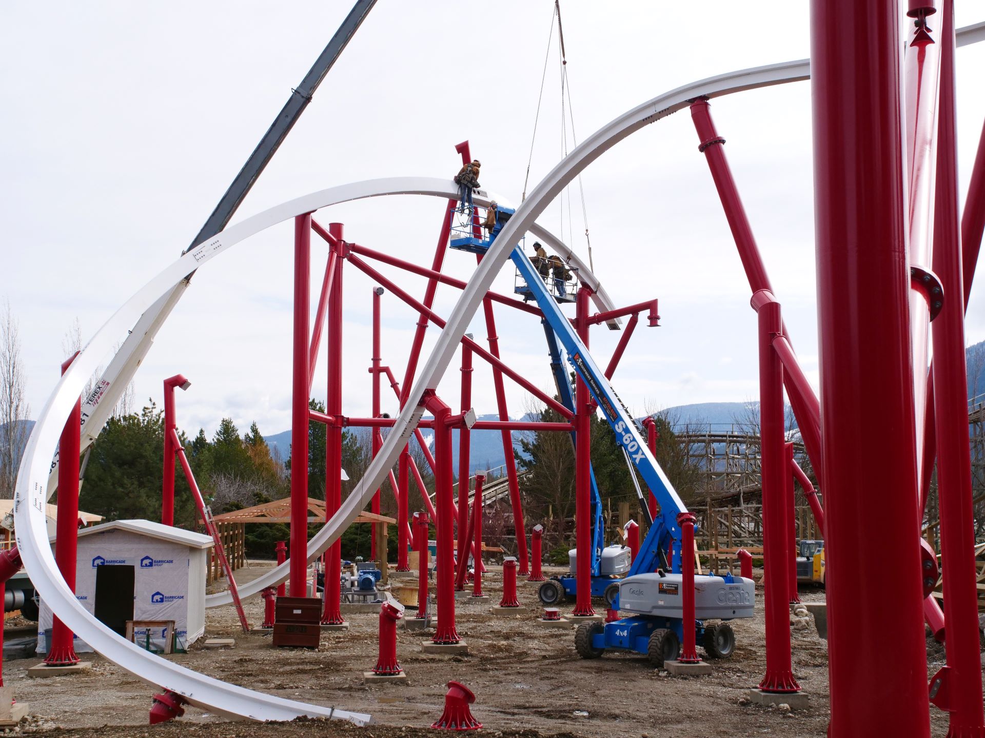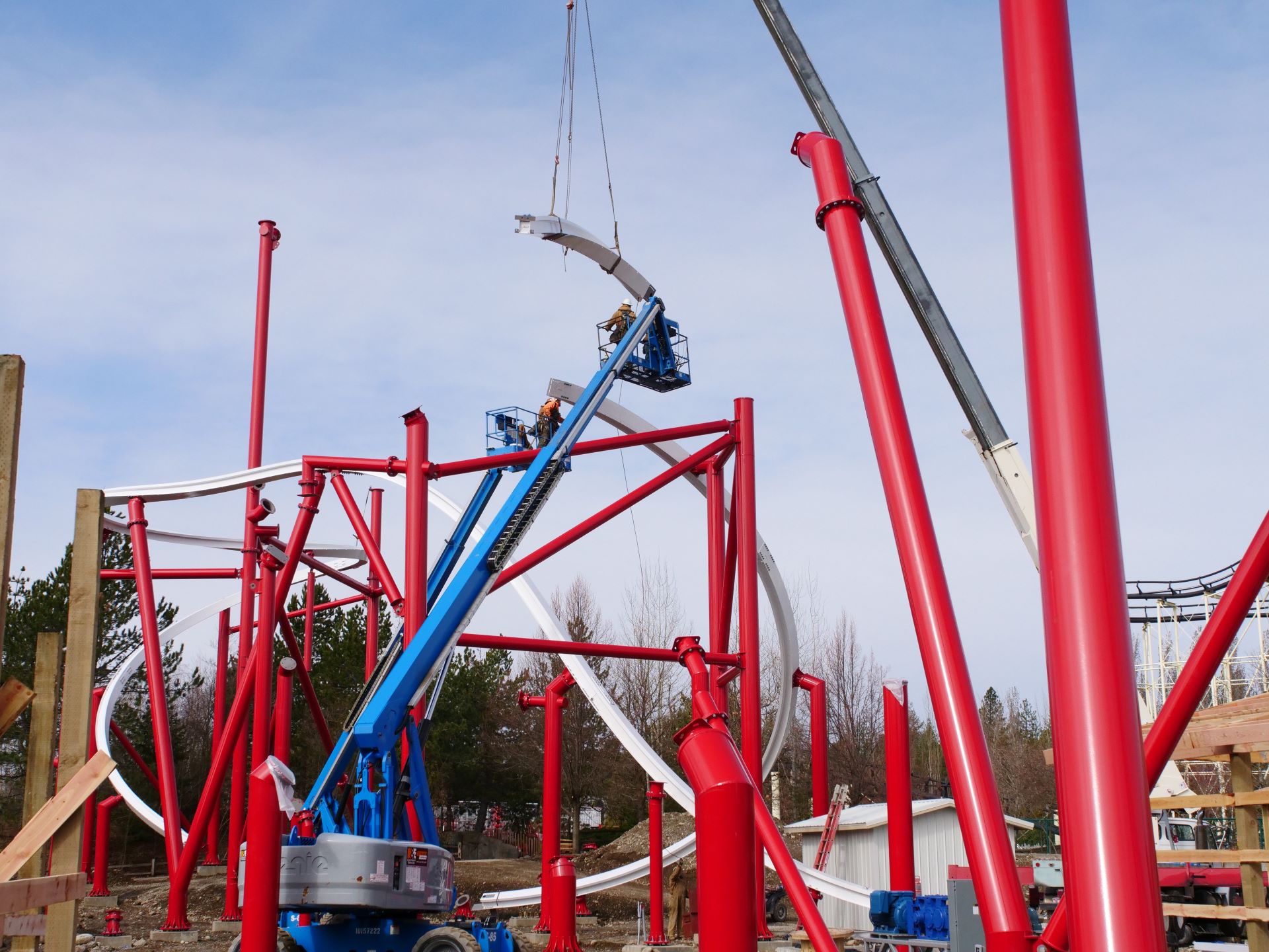 And on the opposite side of the country, the newest Rocky Mountain Construction single-rail coaster is going up quickly. Silverwood Theme Park is excited to debut Stunt Pilot this season. This model will feature a ten-car train.