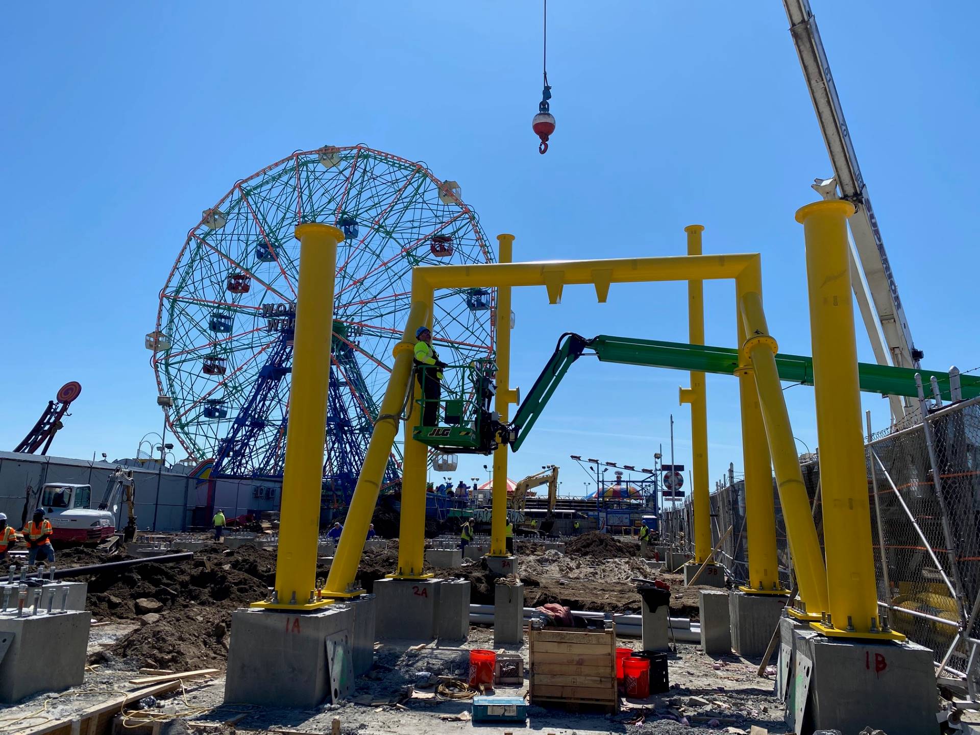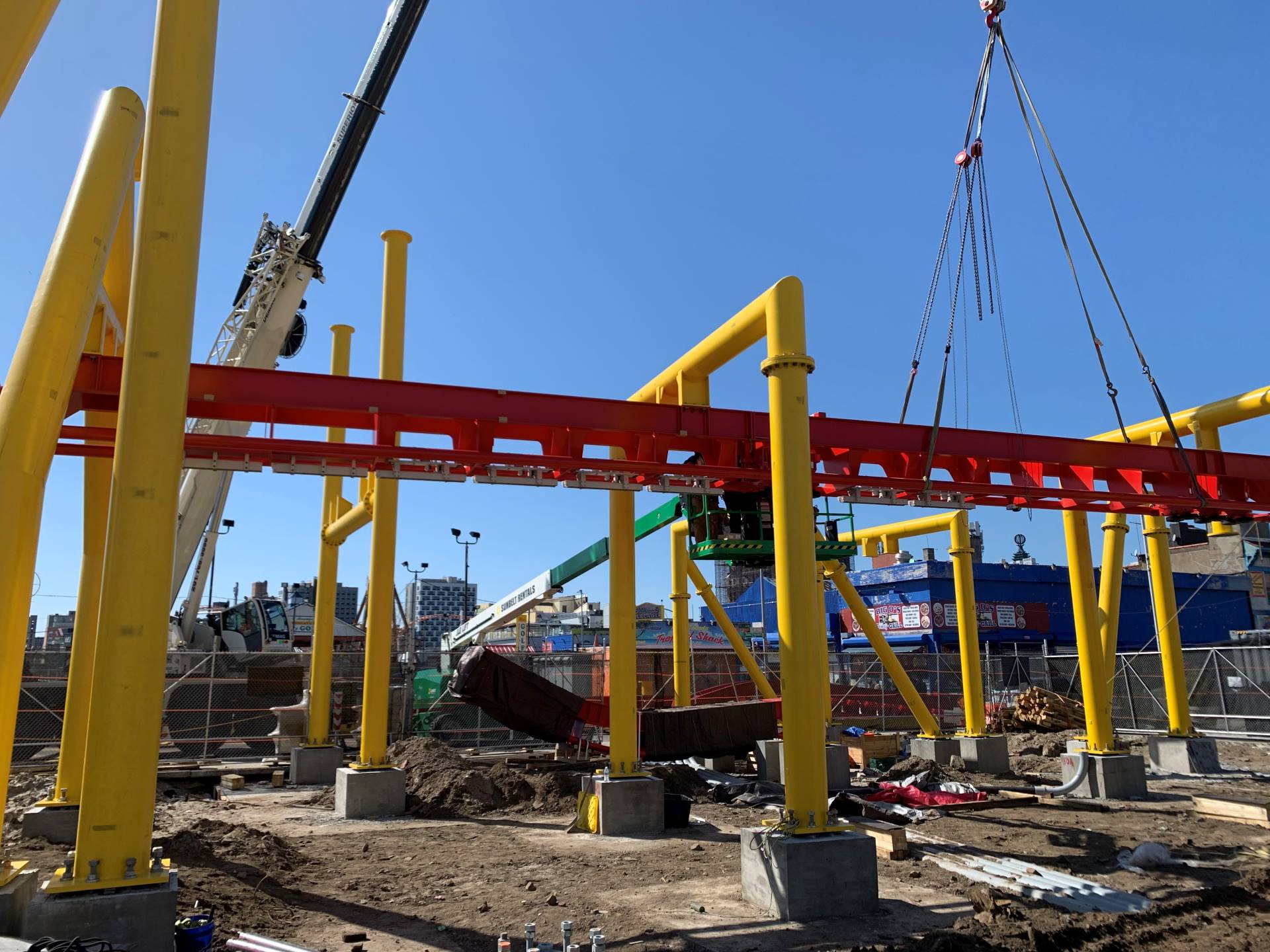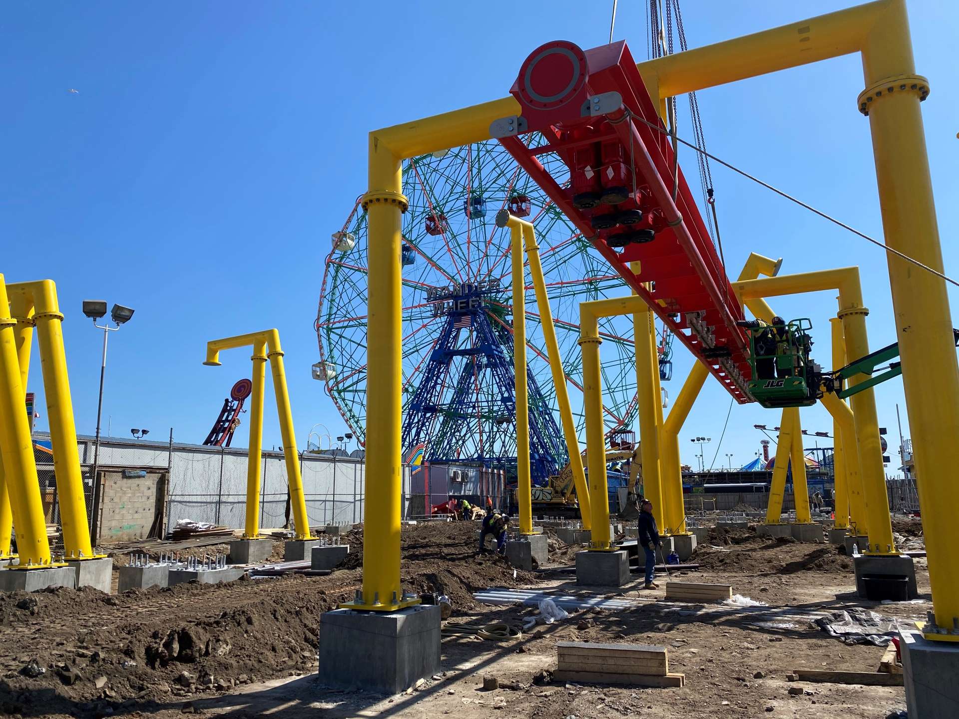 Work is progressing on Phoenix at Deno’s Wonder Wheel Amusement Park in Coney Island (Brooklyn, New York). While the structure has gone vertical, the Suspended Family Coaster still has a way to go. It is expected to be ready to fly this summer.