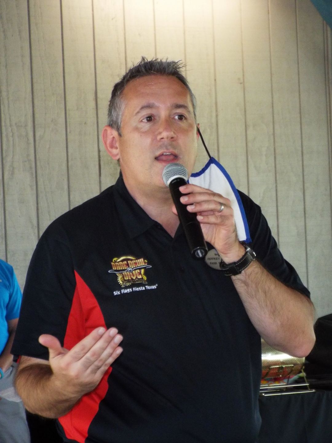 Joshua Glass of Thrill Seekers United questioned the audience with trivia and an assortment of prizes was given away to those who answered, as well as a few door prizes from the park.